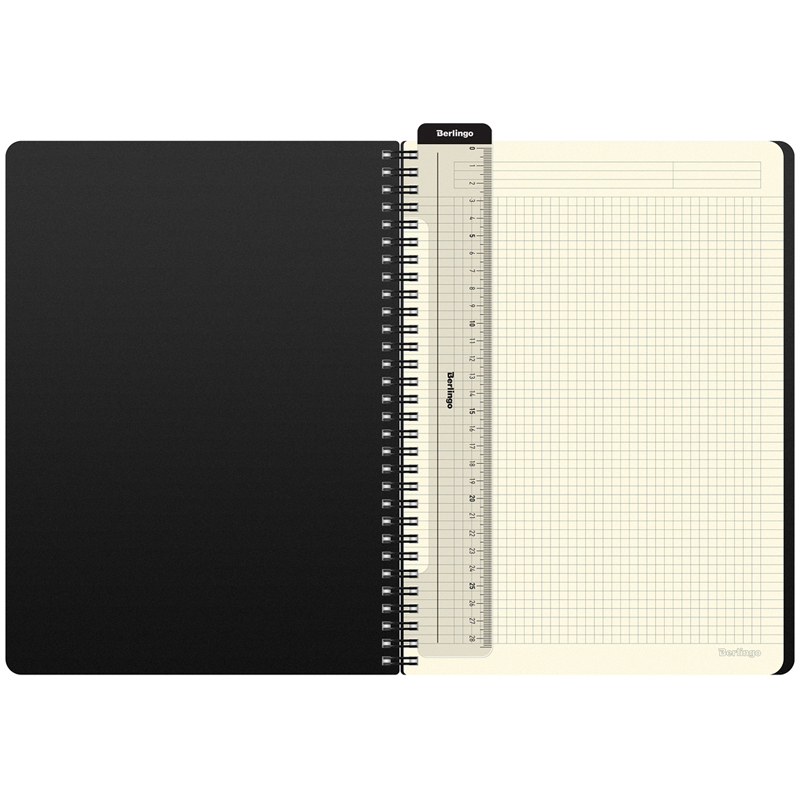 Бизнес-тетрадь А4+, 80л., Berlingo "Steel&Style", клетка, на гребне, 80г/м2, пластик. (полифом) обложка, линейка-закладка, белая