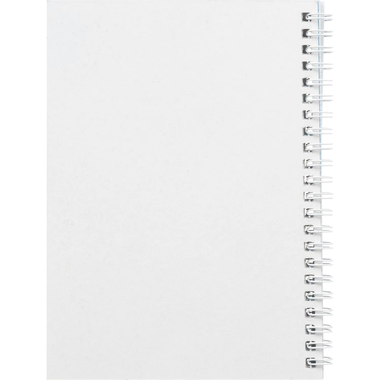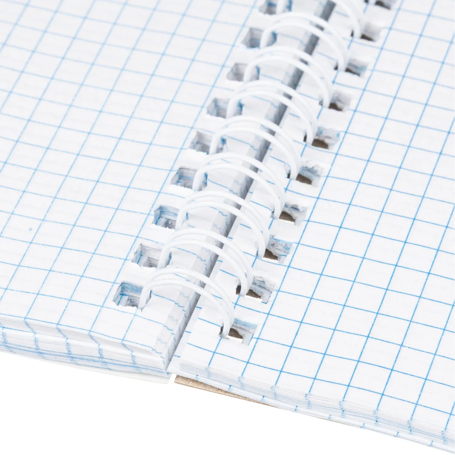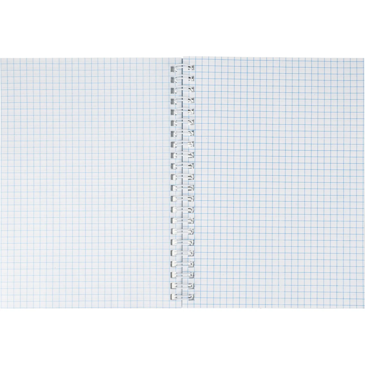 Тетрадь Attache А5 формата. Предназначена для записей, возможно нанесение логотипа. Лицевая обложка сделана из картона 215 г/кв. м с печатью в один цвет — черный, ламинированная. Внутренний блок содержит 80 листов из офсета плотностью 60 г/кв. м белого цвета, вид линовки синяя клетка. Размер 140×195 мм. Задняя часть обложки изготовлена из мелованного картона плотностью 215 г/кв. м, белого цвета. Тип крепления — спираль.