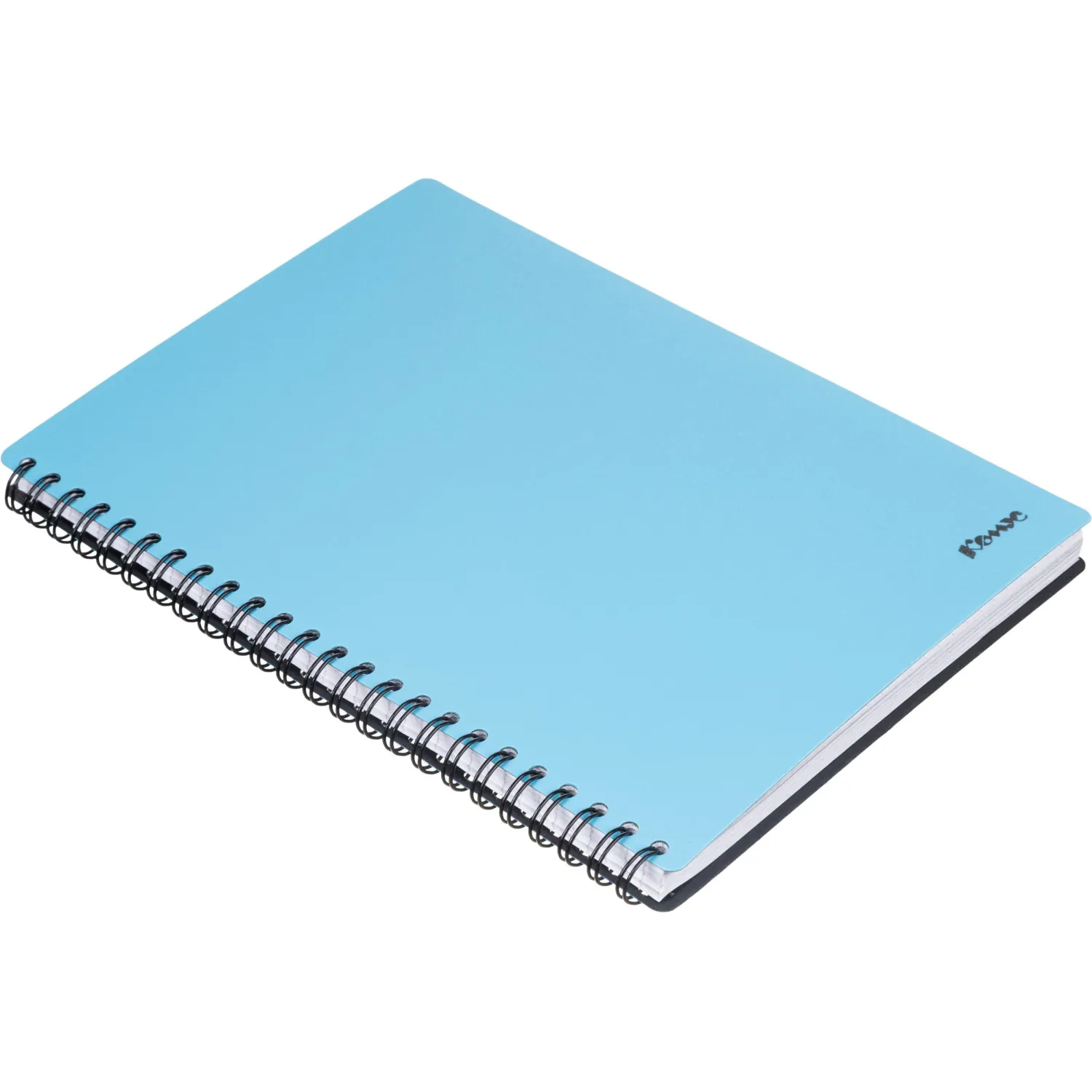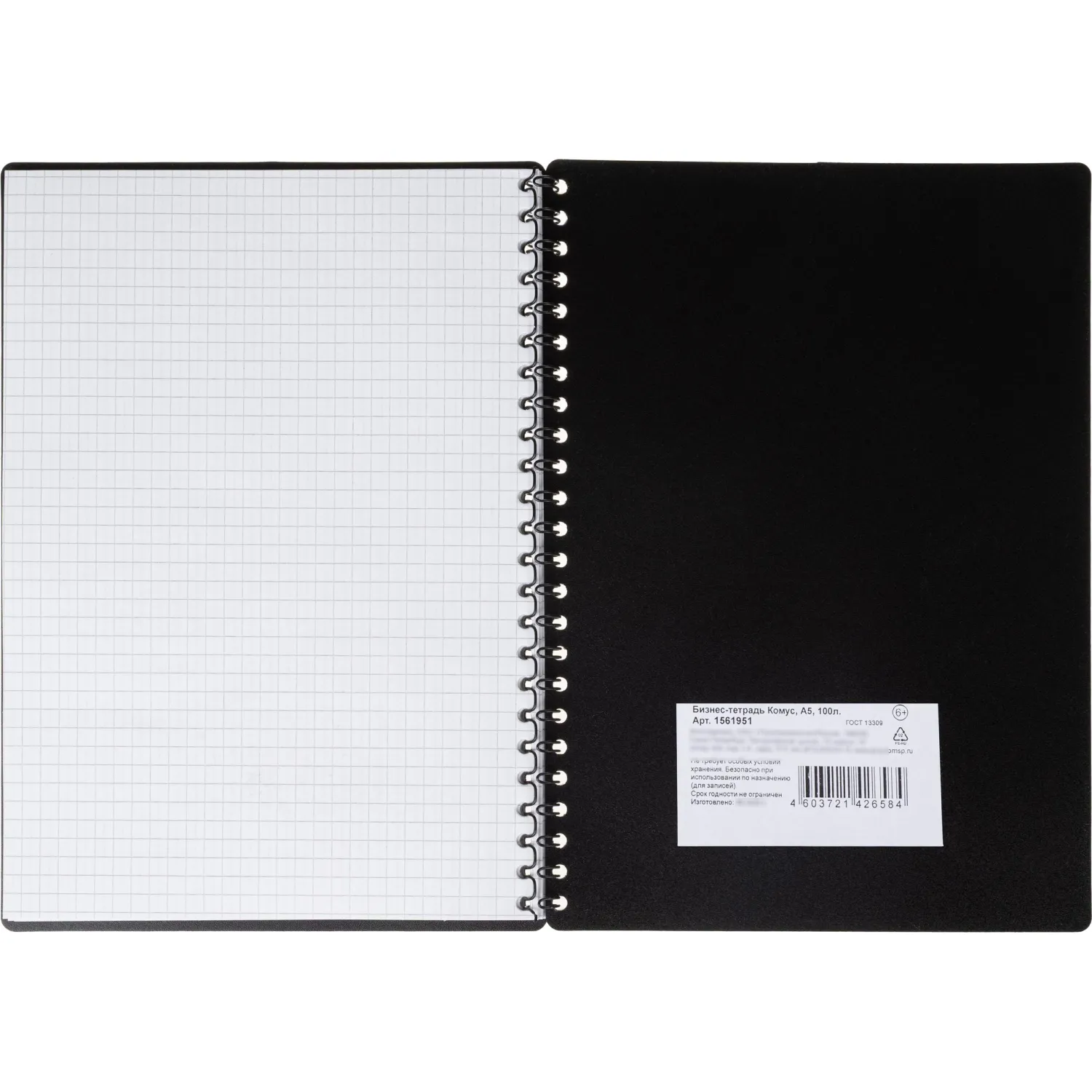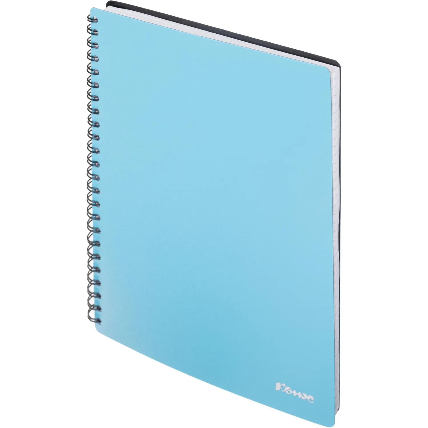 Бизнес-тетрадь Комус A5 на спирали предназначена для записей, используется в учебных заведениях и в офисе. Прочная обложка надежно защищает блок, и изготовлена из двухцветного пластика голубого цвета с лицевой стороны, черного цвета с внутренней стороны, толщиной 0,3 мм, с тиснением логотипа КОМУС серебристой фольгой. Крепление — спираль черного цвета слева, по длинной стороне. Внутренний блок — белая офсетная бумага 65 г/кв.м, белизна — 100%. Тетрадь объемом 100 листов в клетку. Размер тетради — 210×150 мм.