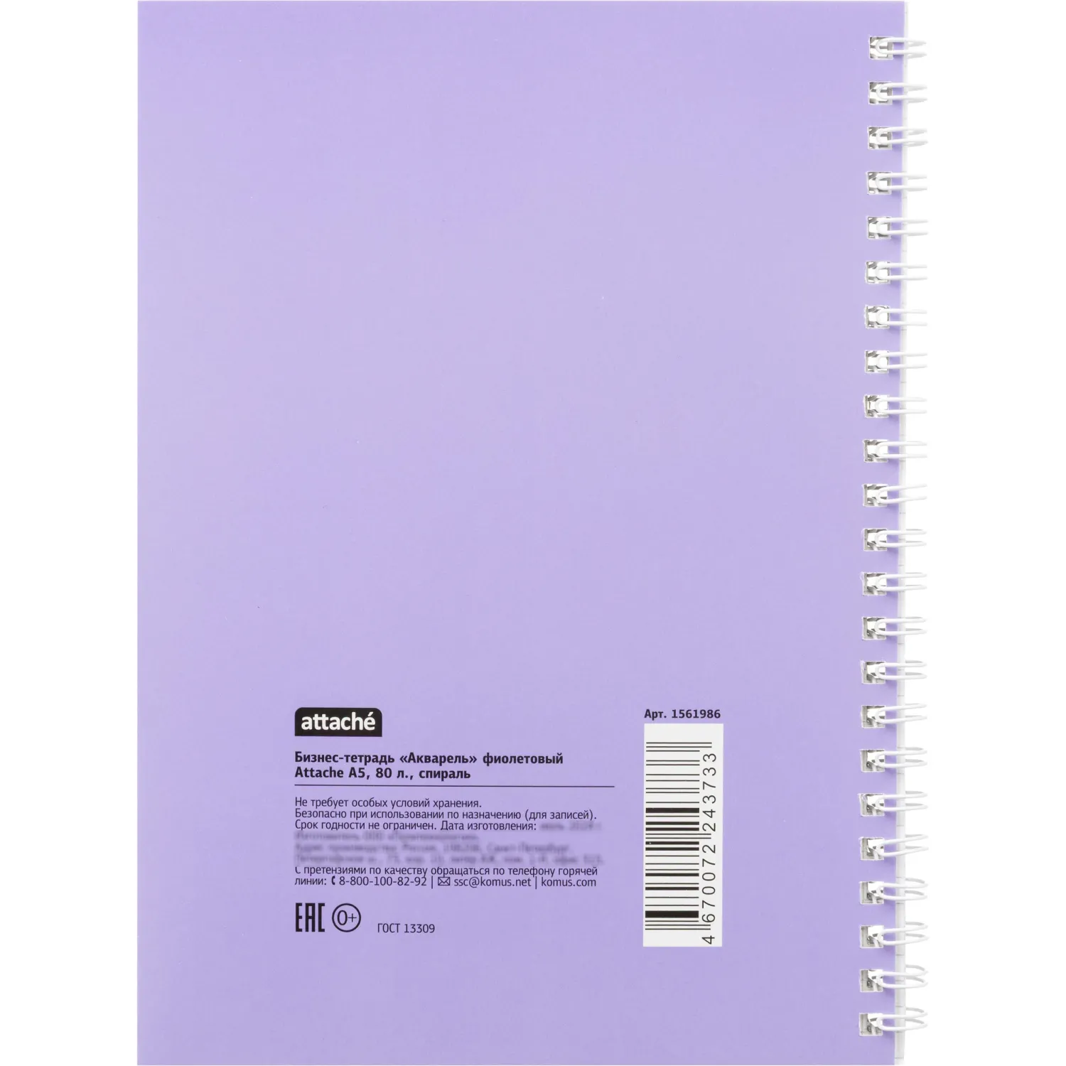 О товаре «Бизнес-тетрадь Attache Акварель A5 80 листов фиолетовая в клетку на спирали (291x204)»