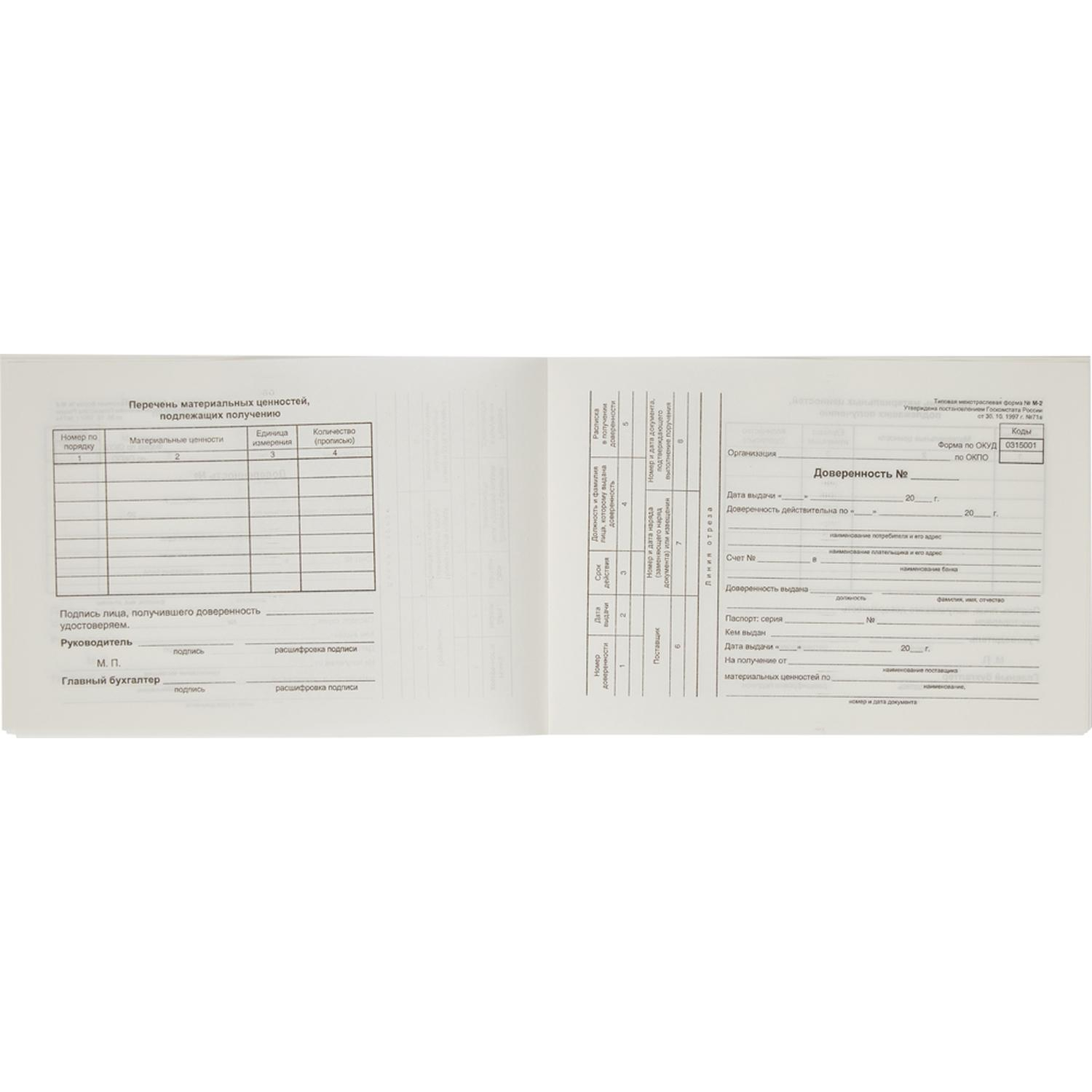 Бланк Attache Доверенность М-2 офсет А5 (135x195 мм, 100 листов)
