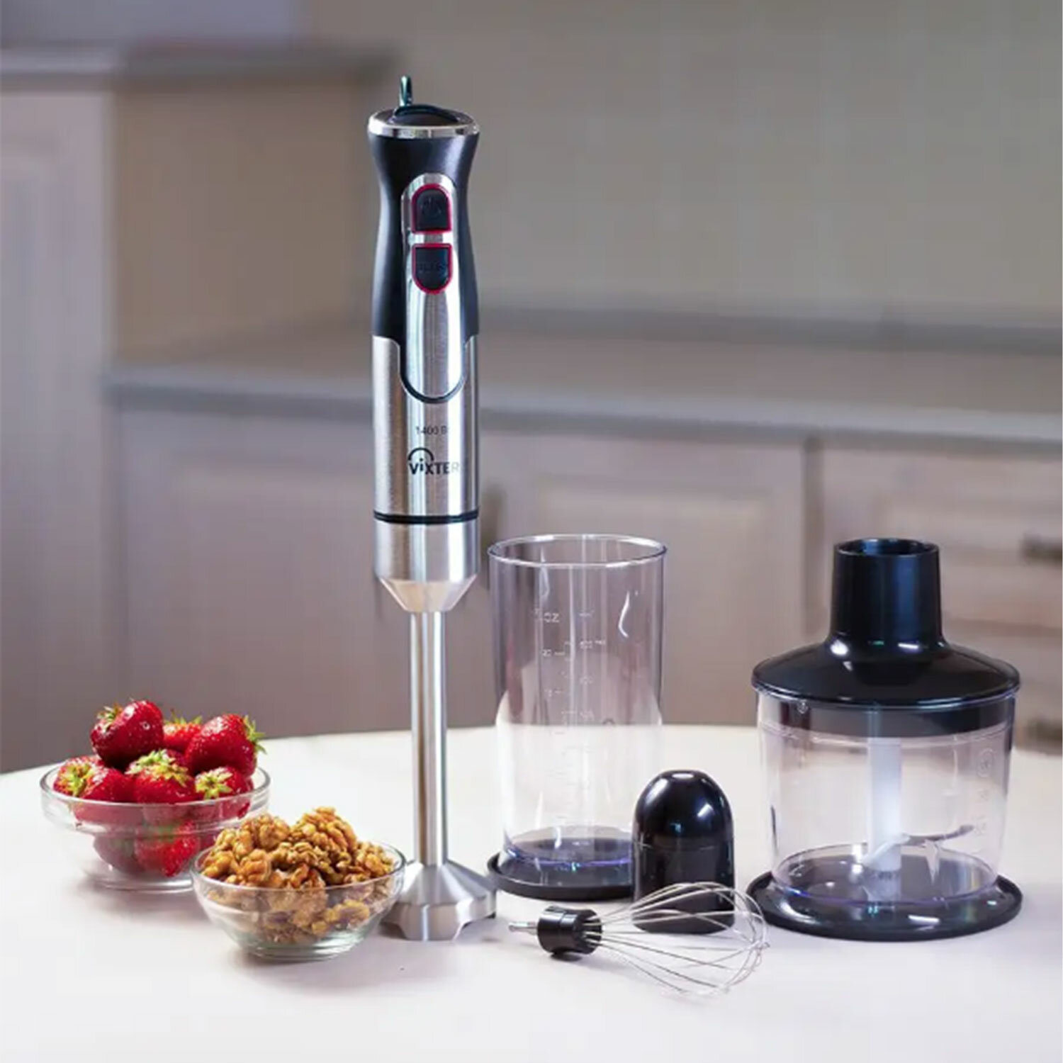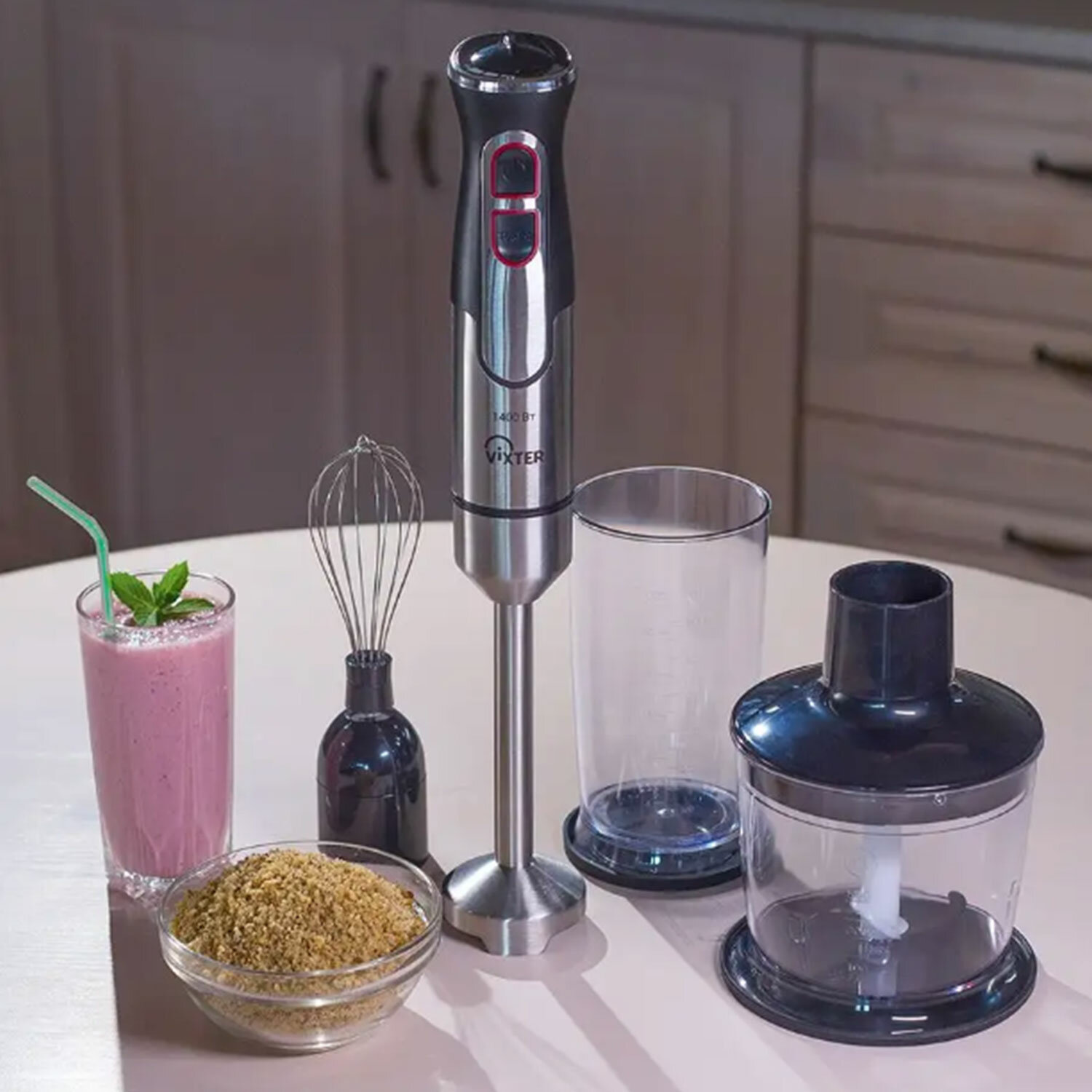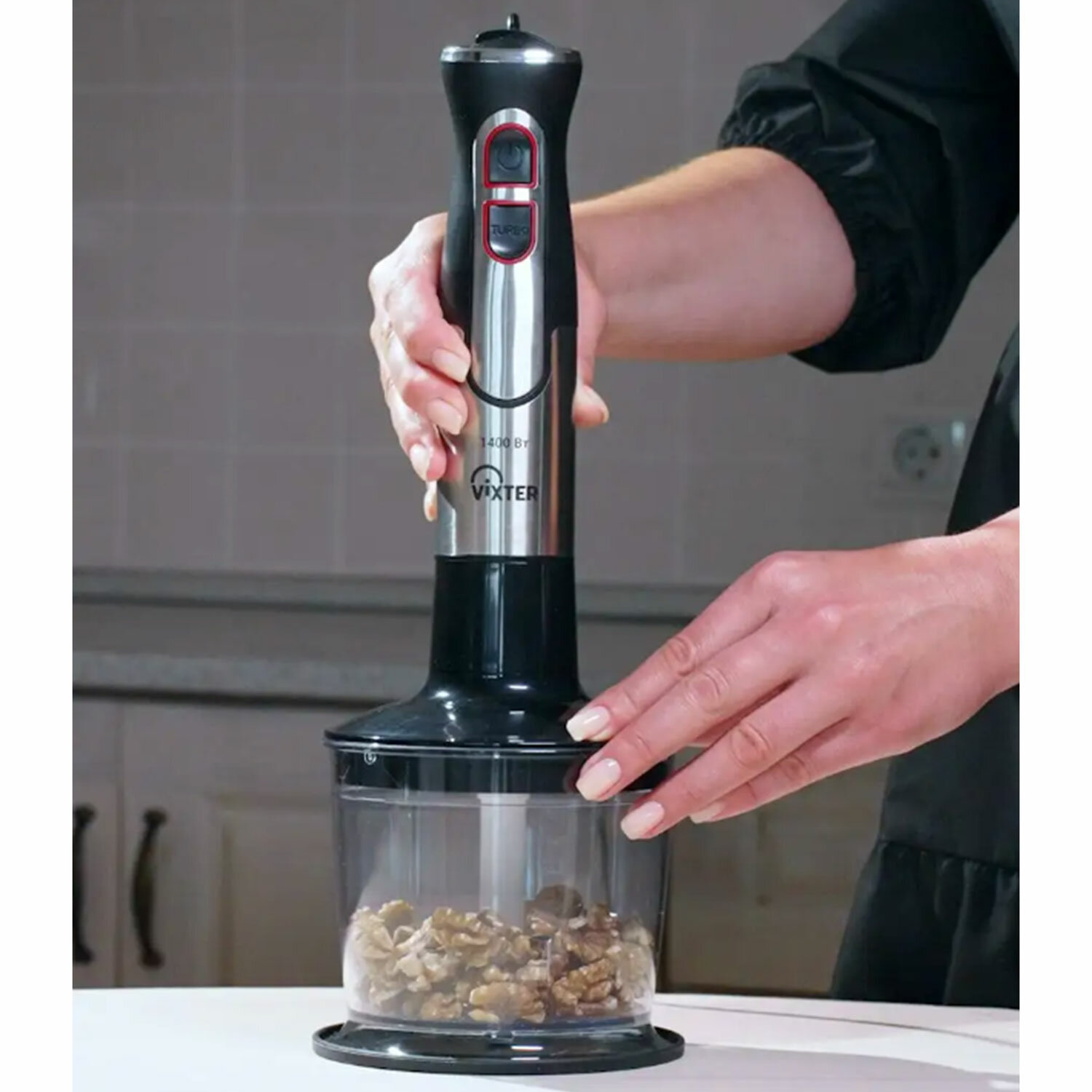 Блендер погружной 3 в 1 VIXTER HBW-2275, 1400 Вт, регулировка скорости, TURBO, 3 насадки, стакан черный