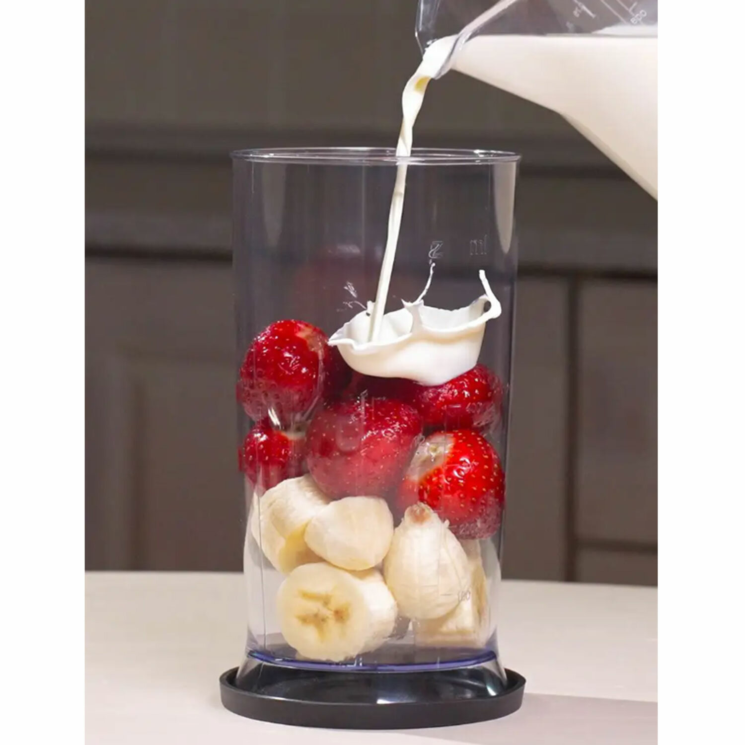 В комплект входит стакан для смешивания объёмом 700 мл с нескользящей крышкой-основанием.