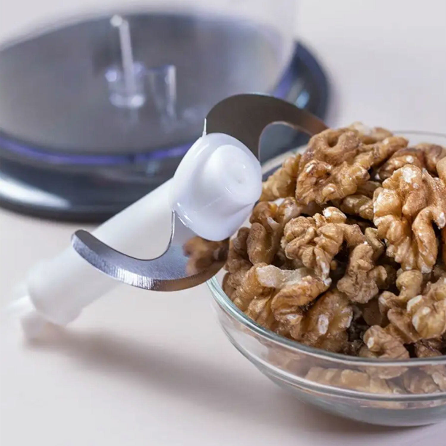 Насадка-блендер для измельчения и смешивания предназначена для приготовления смузи, фруктового пюре и крем-супов, для измельчения орехов, мяса, лука, твердых сыров, вареных яиц, чеснока, зелени, сухого хлеба. При использовании измельчителя удерживайте кнопку включения не более 3-5 секунд с перерывами на 1-2 секунды.