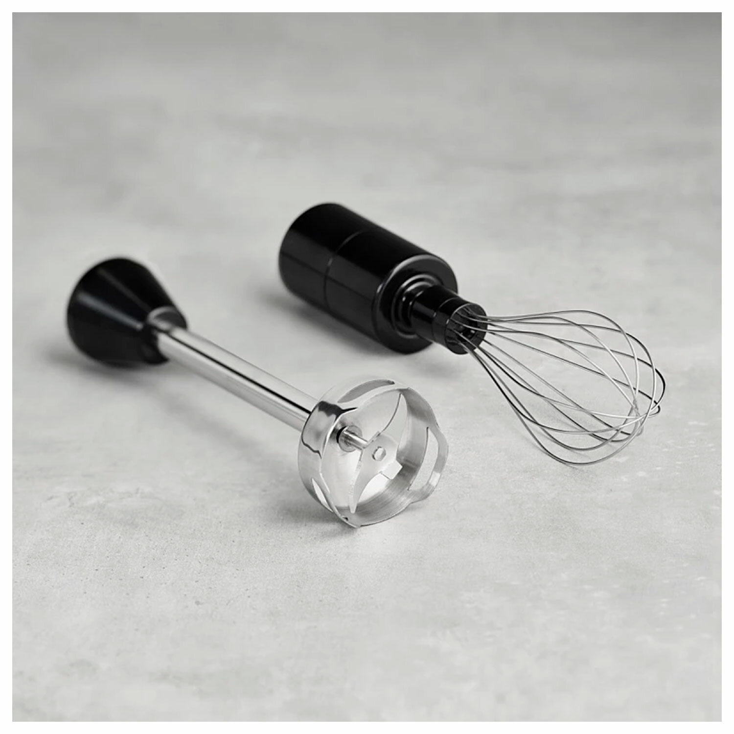 В комплекте к блендеру прилагаются насадка для измельчения и смешивания, мини-измельчитель, объем которого составляет 0.35 л, металлический венчик для взбивания, мерный стакан объемом 0.6 л и насадка для приготовления пюре.