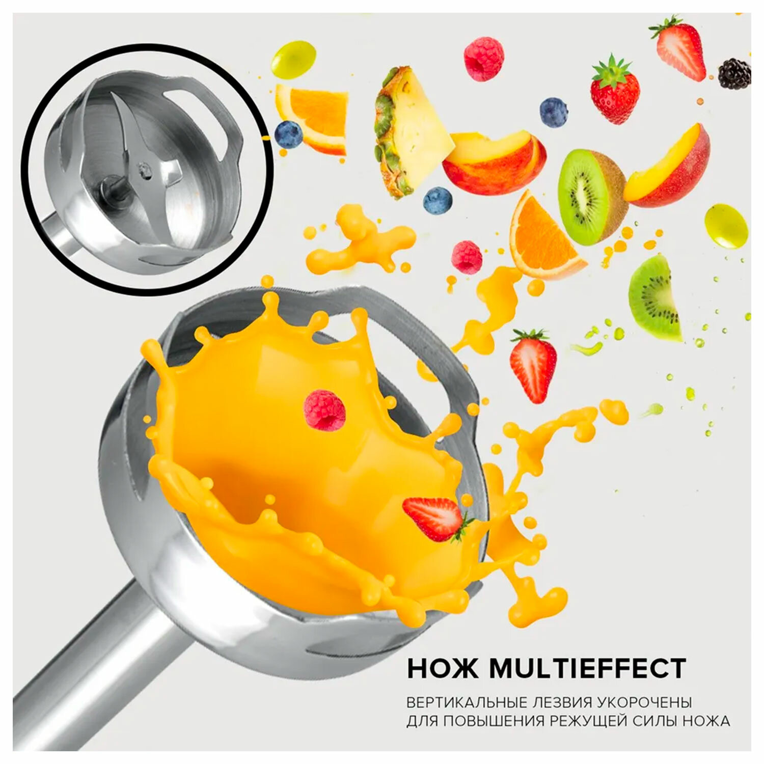 Погружная часть и лезвия изготовлены из прочной нержавеющей стали собственной марки Steel Pro, что гарантирует долговечность прибора.