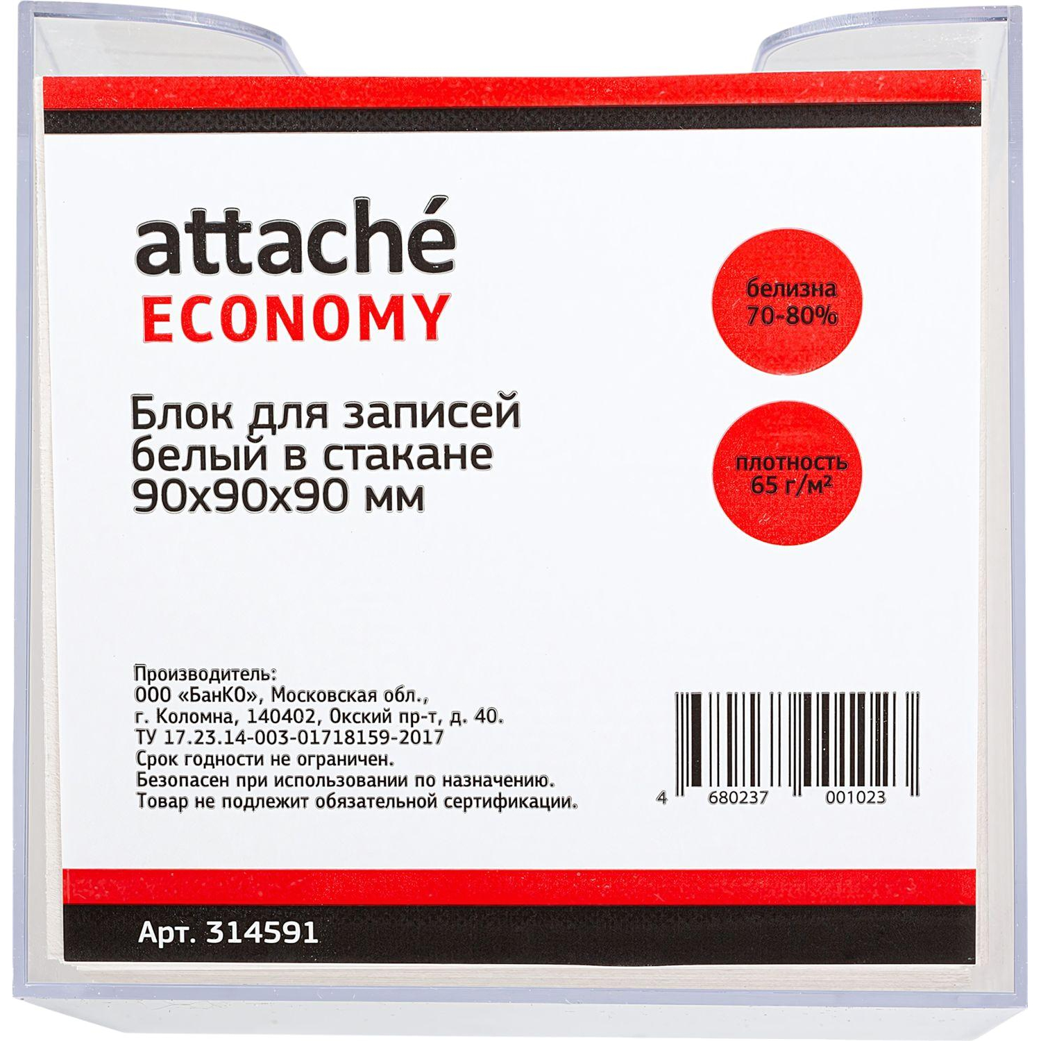 Блок для записей 90x90x90 мм в боксе белый Attache Economy (плотность 65 г/кв.м)
