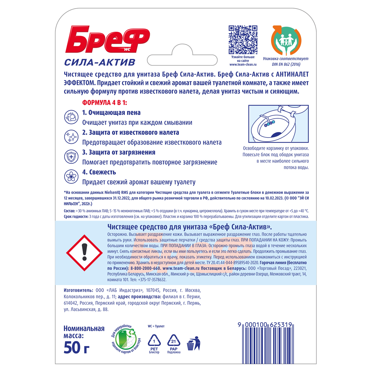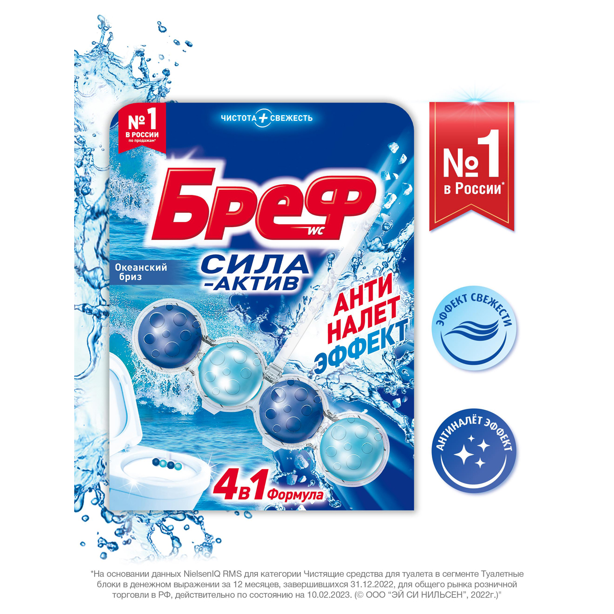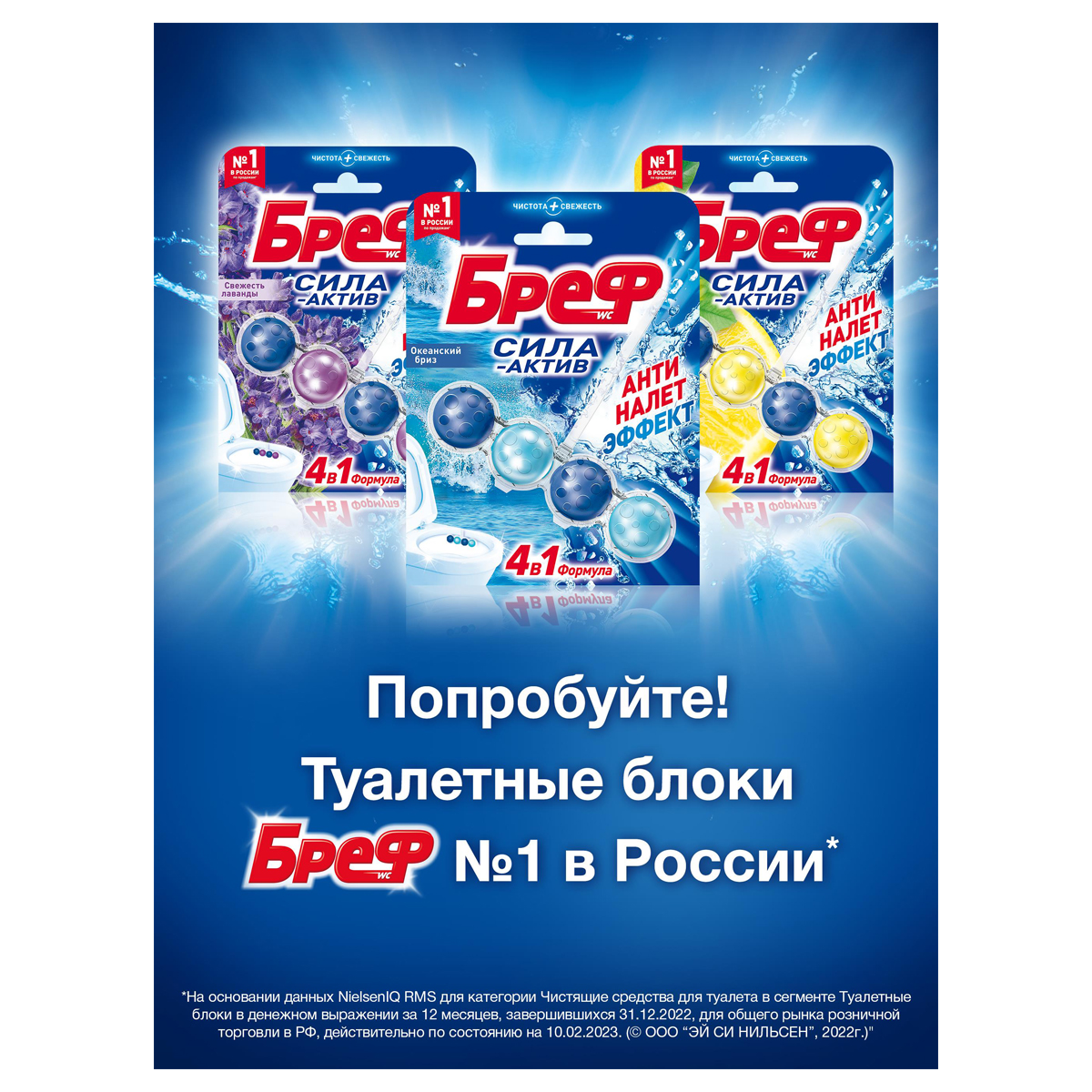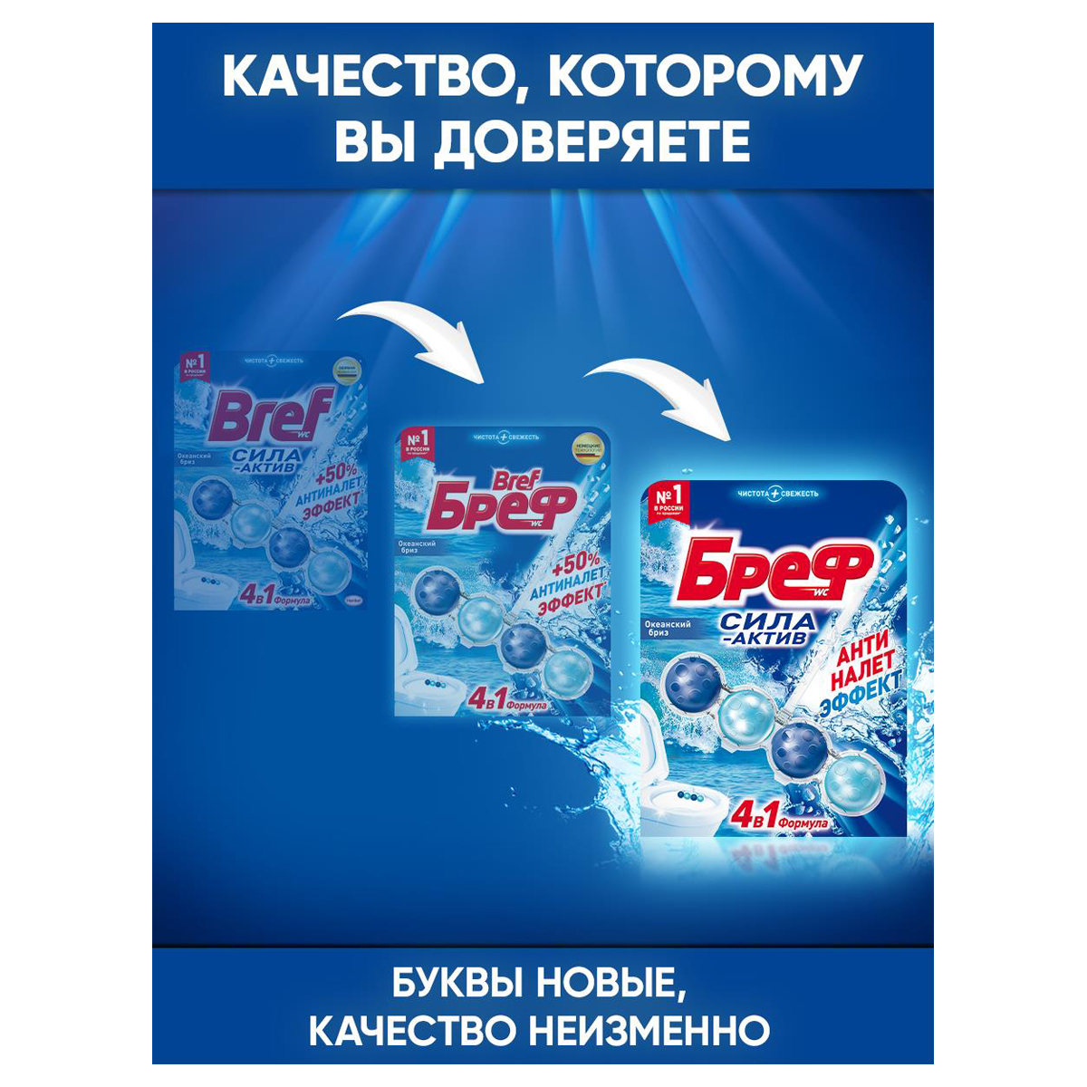 Блок для унитаза Бреф сила-актив Океанский бриз (3 штуки в упаковке)