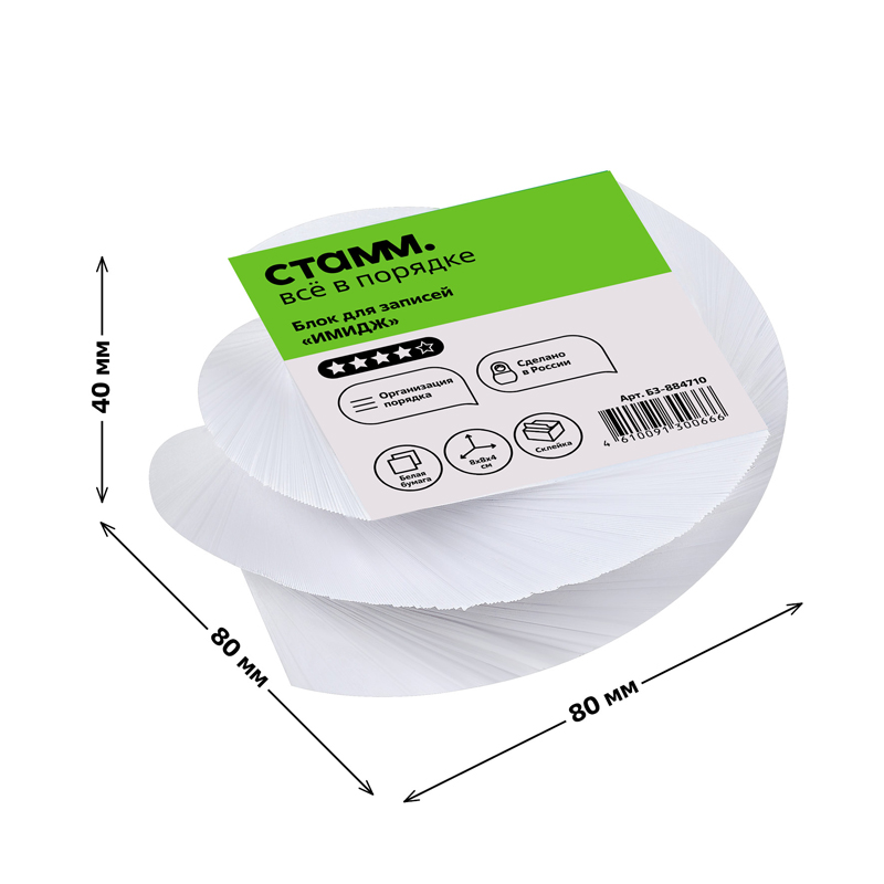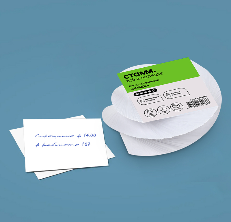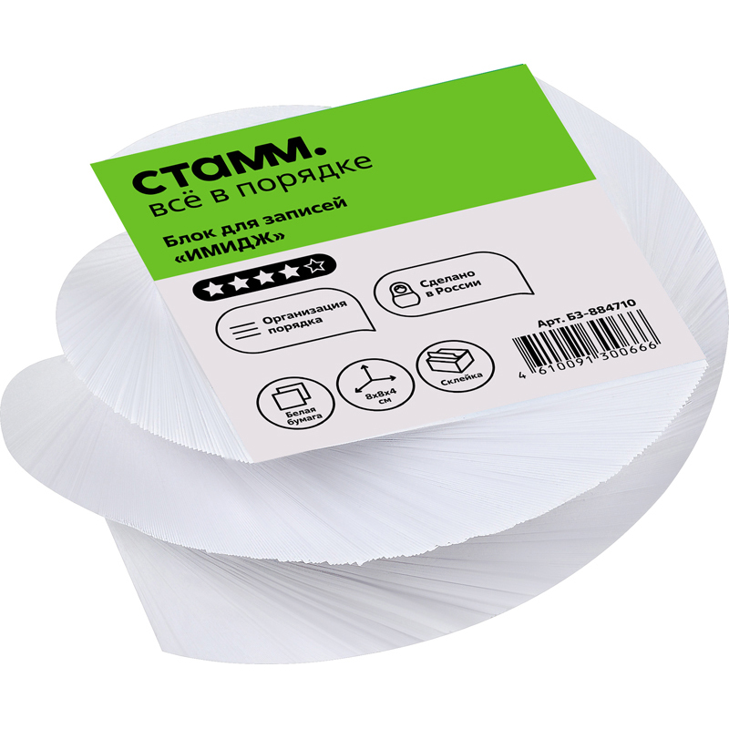 О товаре «Блок для записей на склейке СТАММ "Имидж", 8*8*4см, витой, белый»