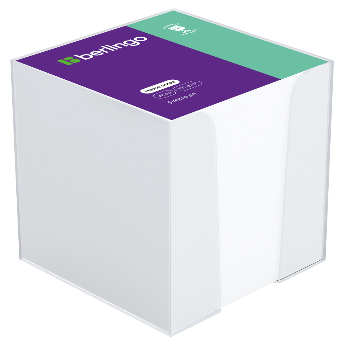 О товаре «Блок для записи Berlingo "Premium" 9*9*9см, пластиковый бокс, белый, 100% белизна»