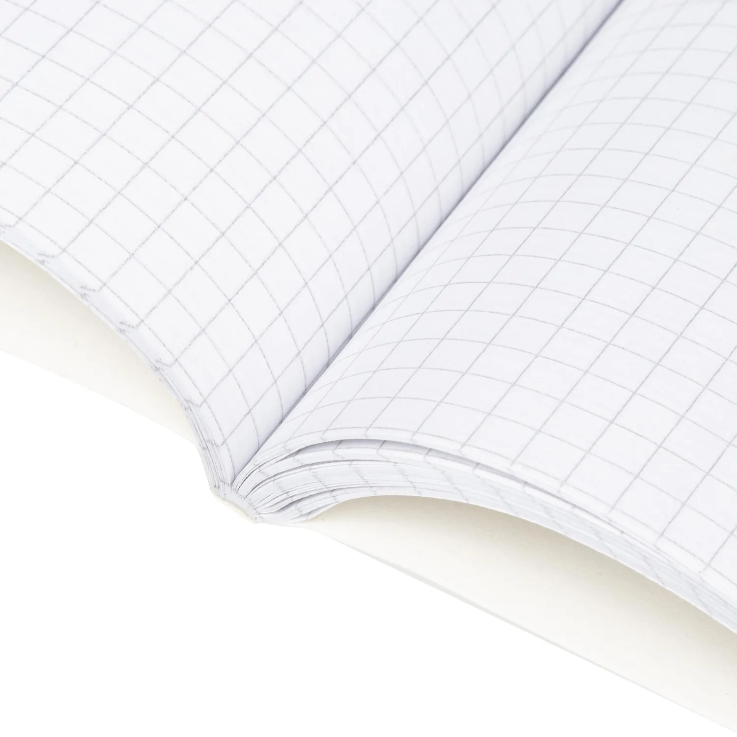Внутренний блок состоит из 60 листов офсетной бумаги плотностью 60 г/кв.м, разлинованной в клетку серого цвета. Бумага белого цвета имеет белизну 100%, подходит для письма ручкой и карандашом. Цвет обреза белый. Поля отсутствуют, перфорация не предусмотрена.