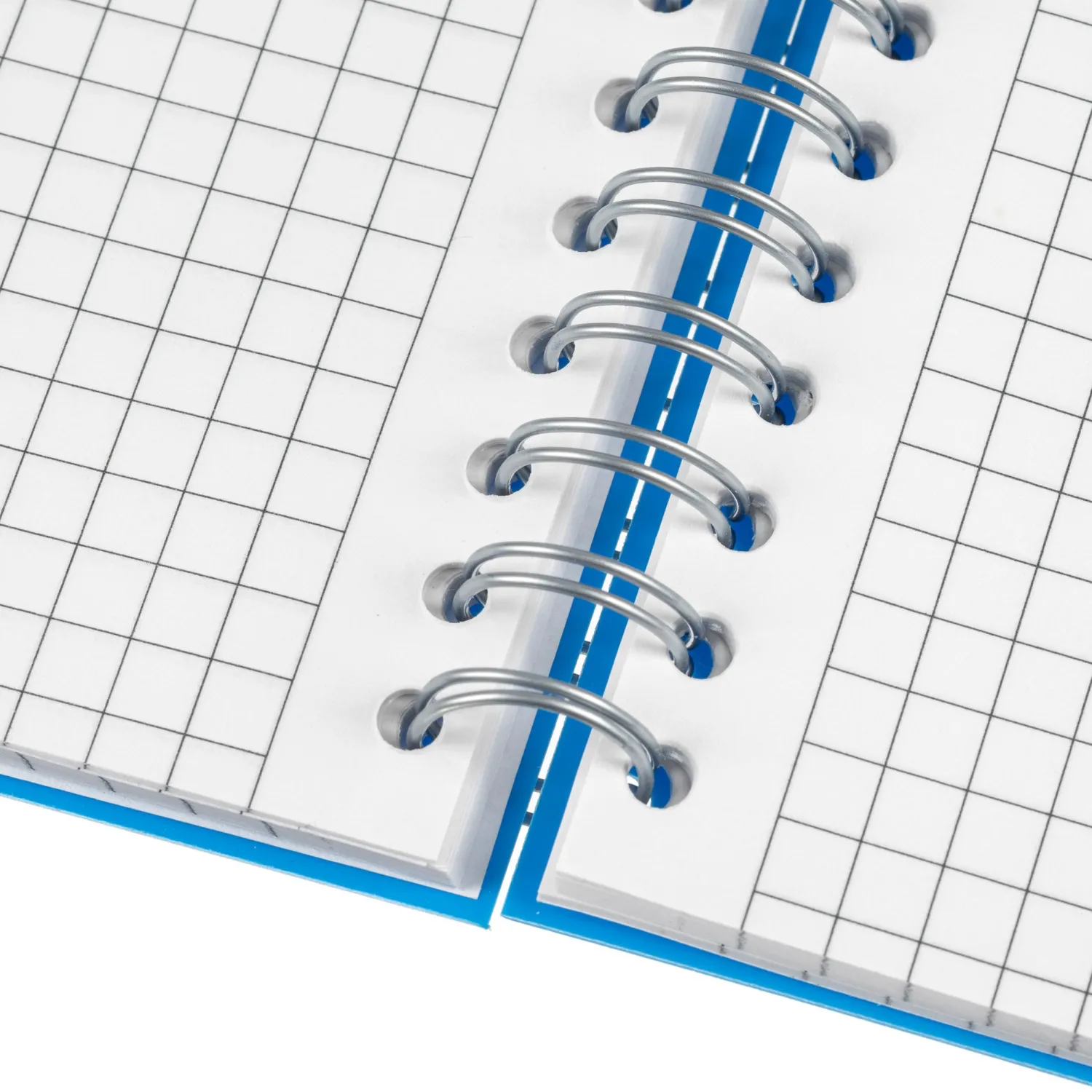 Внутренний блок состоит из 80 листов белой офсетной бумаги плотностью 70 г/кв. м с белизной 100%. Бумага разлинована в клетку без полей и подходит для письма ручками и карандашами. Цвет обреза — белый. Листы закреплены сверху с помощью металлического гребня — евроспирали увеличенного диаметра, которая обеспечивает надёжную фиксацию блока и удобное перелистывание страниц. Блокнот произведён в России и поставляется по одной штуке.