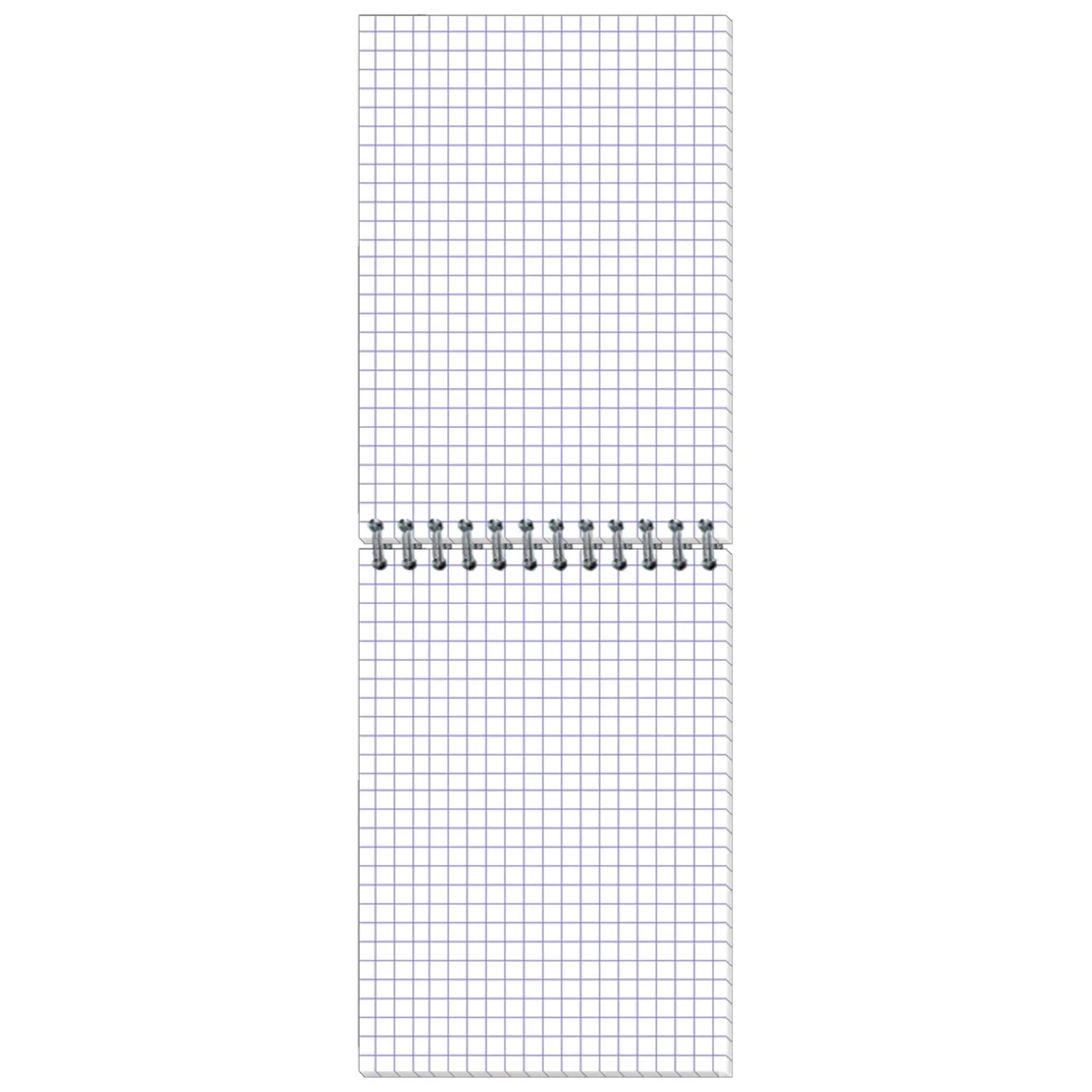 Блокнот Микровельвет офисного дизайна. Однотонная обложка бордового цвета, изготовленная из дизайнерского картона с тиснением. Плотность обложки — 280 г/кв.м. Внутренний блок, скрепленный по верхнему краю металлической спиралью, содержит 50 листов (100 страниц) белой, офсетной бумаги с разлиновкой в клетку. Размер изделия: 101×145 мм. Плотность блока — 60 г/кв.м. Бумага высокой степени белизны по плотности соответствует качественной офисной бумаге. Блокнот имеет формат А6. Минимальный тираж под нанесение логотипа от 30 штук.