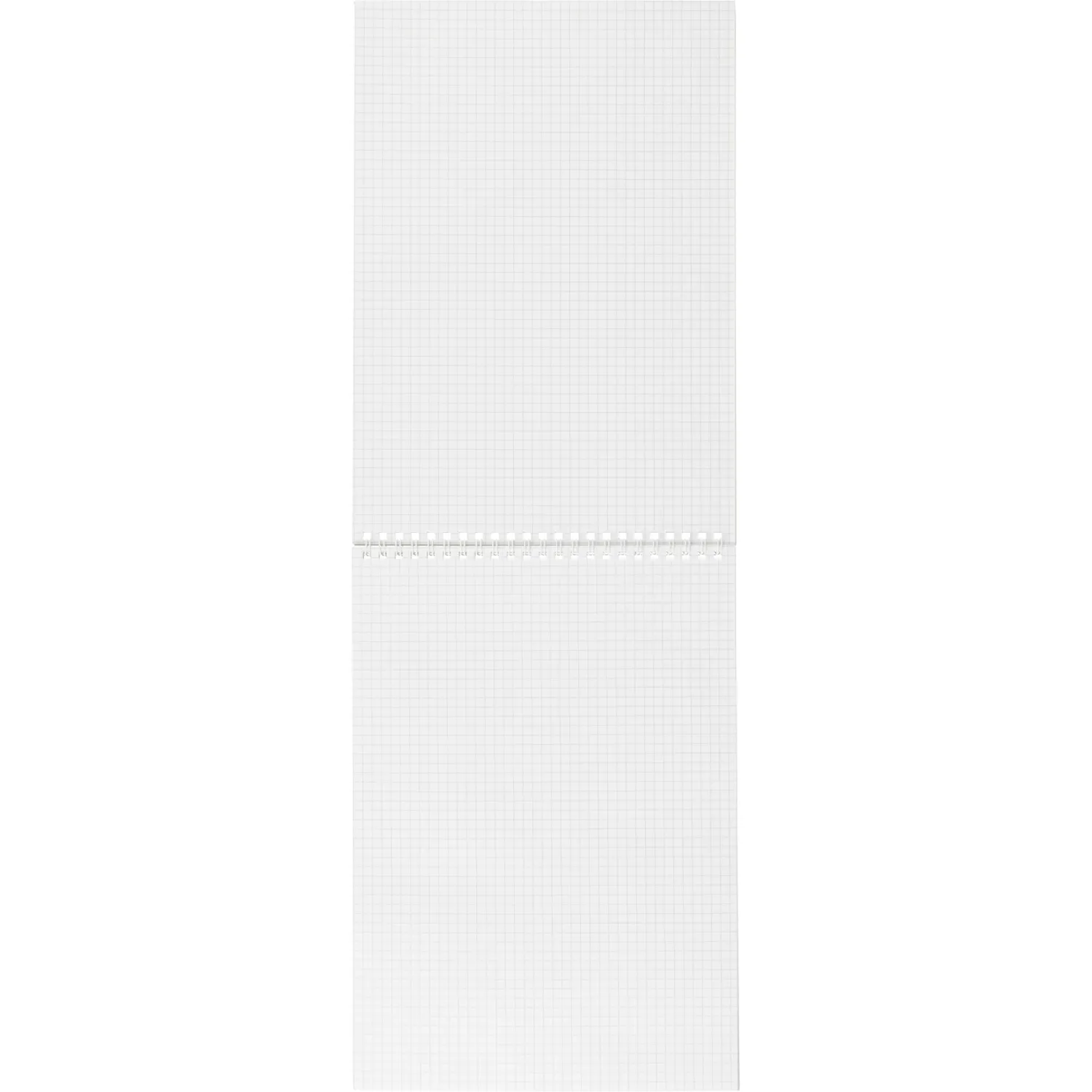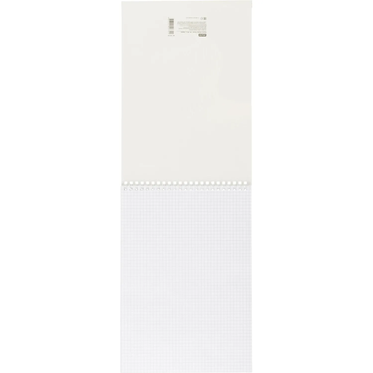 Внутренний блок содержит 60 белых листов офсетной бумаги плотностью 60 г/кв. м. Бумага имеет белизну 100% и разлинована в клетку с серой линовкой, что удобно для структурированных записей. Обрез блока белого цвета. Размер листа составляет 20.4×29.1 см. Поля на страницах отсутствуют. Листы скреплены по верхнему краю металлическим гребнем, который обжимает корешок и обеспечивает надёжную фиксацию блока, а также удобное перелистывание страниц.