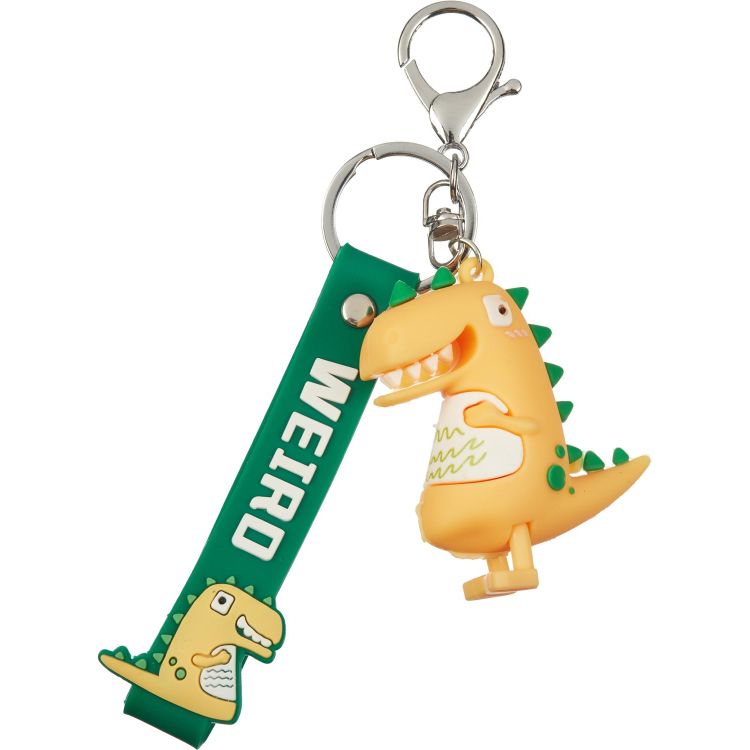 Брелок «Динозавр жёлтый» — это забавный и яркий аксессуар, который наверняка понравится любителям динозавров. Он выполнен в виде милого жёлтого динозавра с зелёными шипами на спине и белым животом. Динозавр имеет открытую пасть с видимыми зубами, что придаёт ему весёлый и игривый вид.