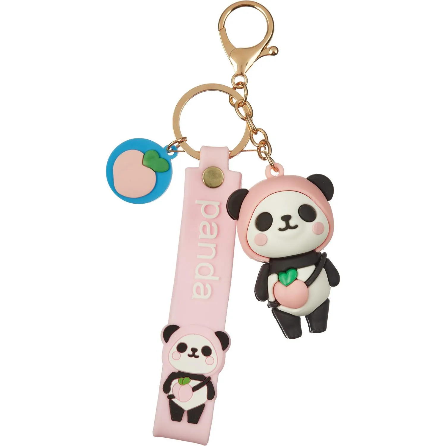 В комплекте с фигуркой панды идёт розовая ленточка с надписью «panda», украшенная изображением панды. Ленточка может использоваться как дополнительный элемент декора или для удобного ношения брелока. Кроме того, к брелоку прикреплён небольшой голубой подвесок в форме персика, что добавляет яркости и оригинальности дизайну.