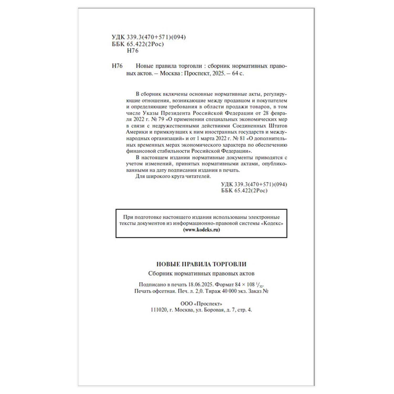 О товаре «Брошюра "Правила торговли", мягкий переплет, Проспект, 126114»