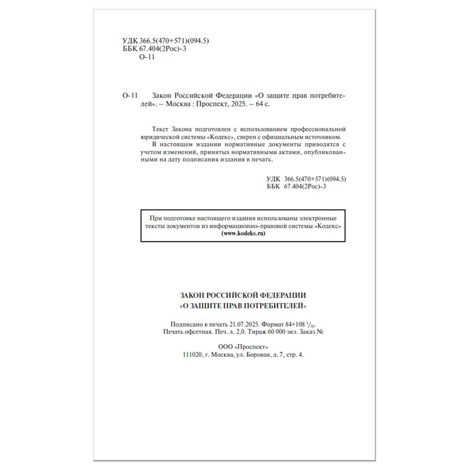 О товаре «Брошюра Закон РФ "О защите прав потребителей", мягкий переплет, 126048»
