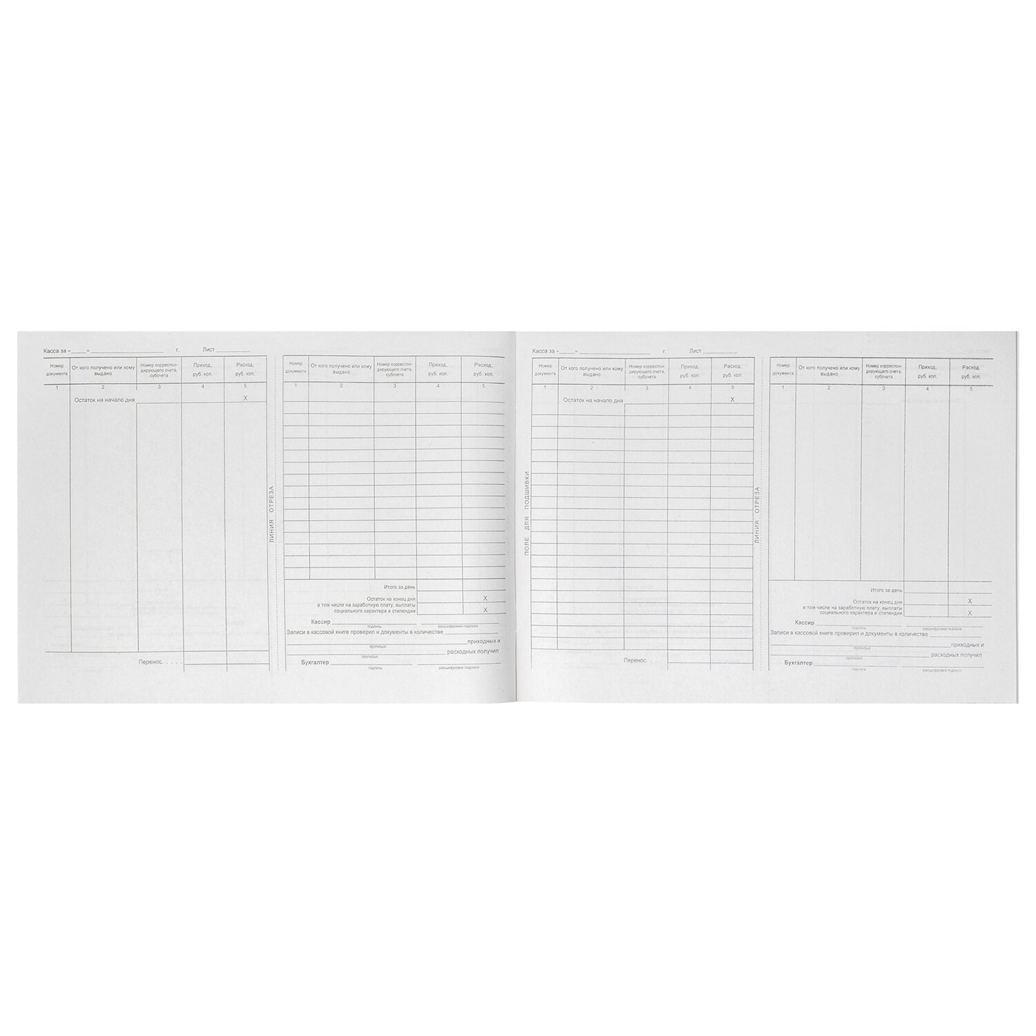 Книга кассовая горизонтальная форма NКО-4 (48 листов, скрепка, обложка картон)
