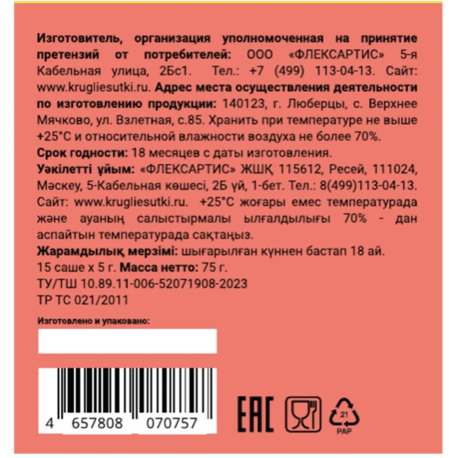 Срок годности: 18 месяцев.
