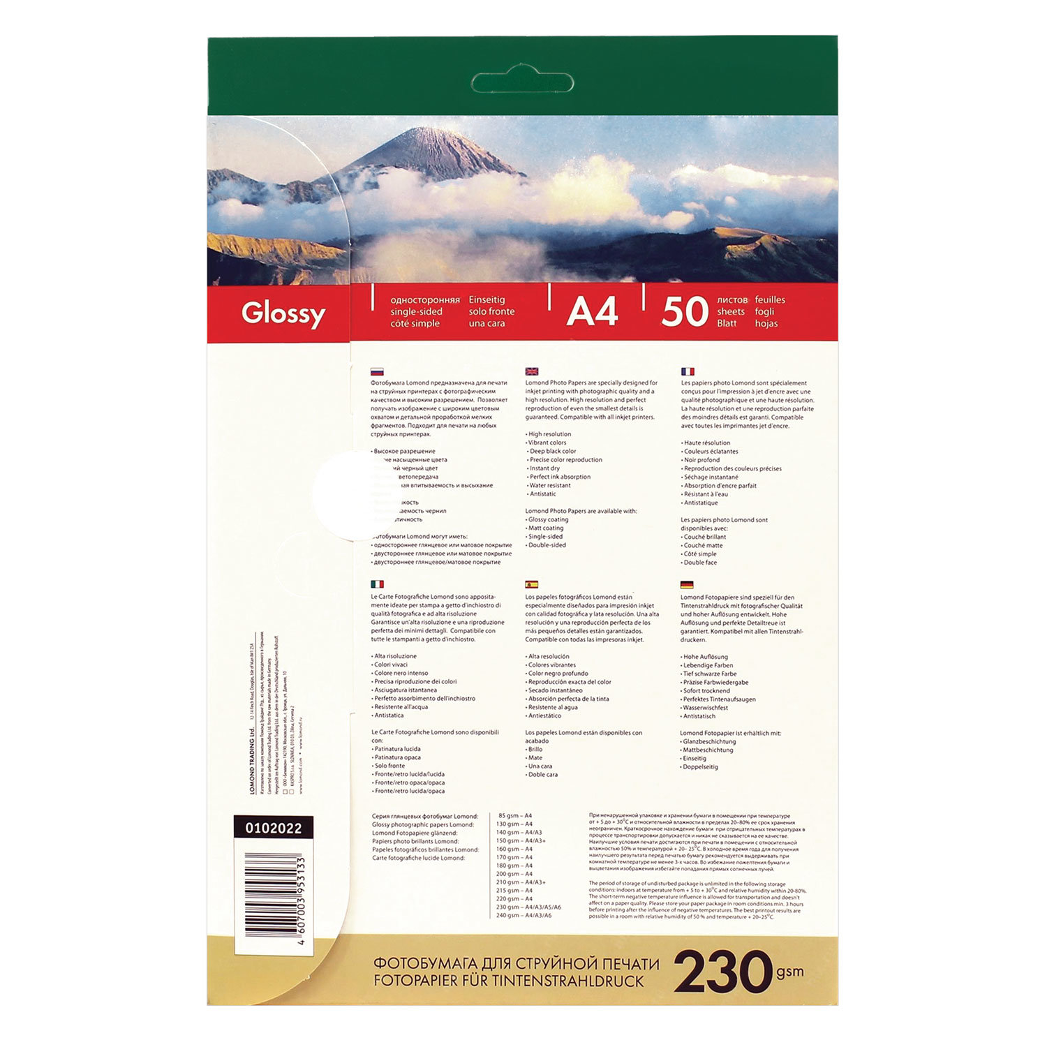 О товаре «Фотобумага для цветной струйной печати Lomond односторонняя (глянцевая, А4, 230 г/кв.м, 50 листов, артикул производителя 0102022)»