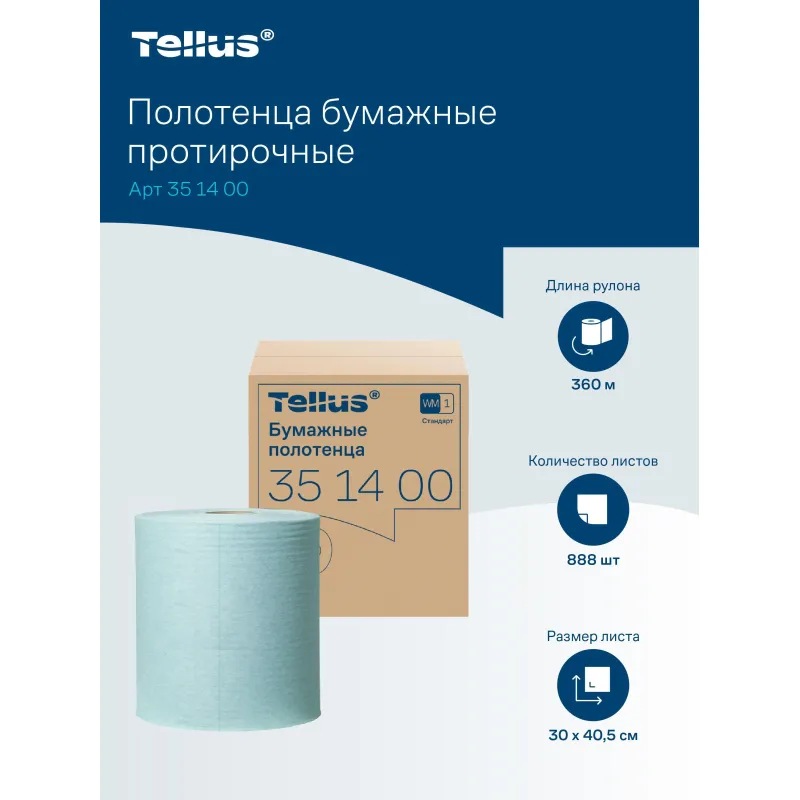 Бумага протирочная в рулоне Tellus (Торк/Tork) 351400 888 листов 26.9×40.5 см бирюзовая 1-слойная