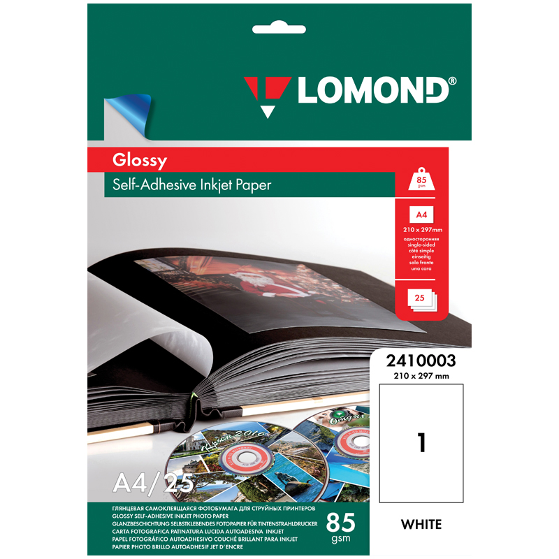 О товаре «Фотобумага САМОКЛЕЯЩАЯСЯ глянцевая, А4, 85 г/м2, 25 листов, LOMOND, 2410003»