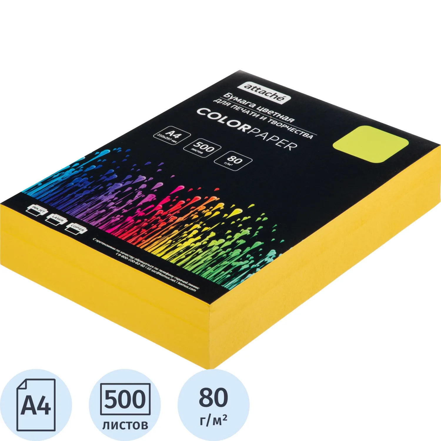 Бумага цветная для печати Attache желтый интенсив (А4, 80 г/кв.м, 500 листов)