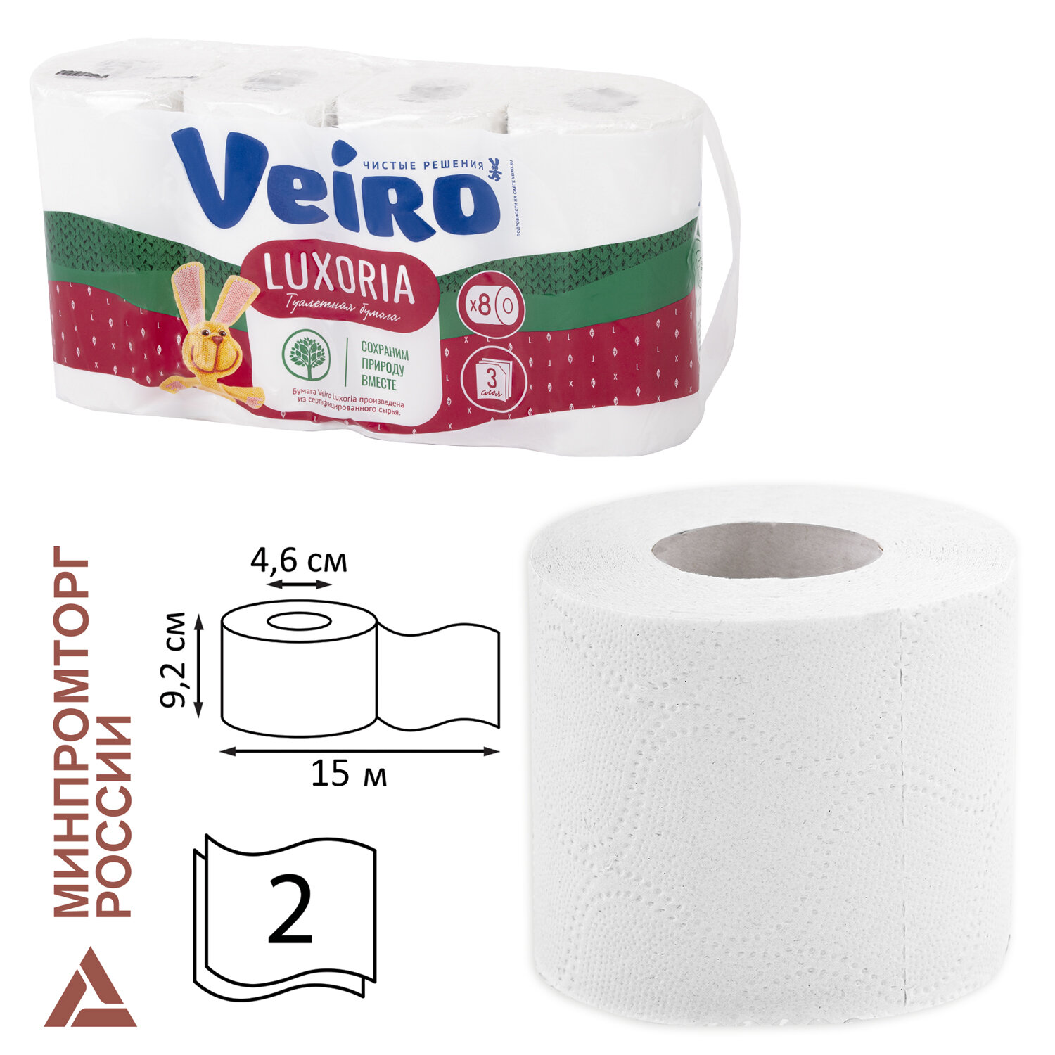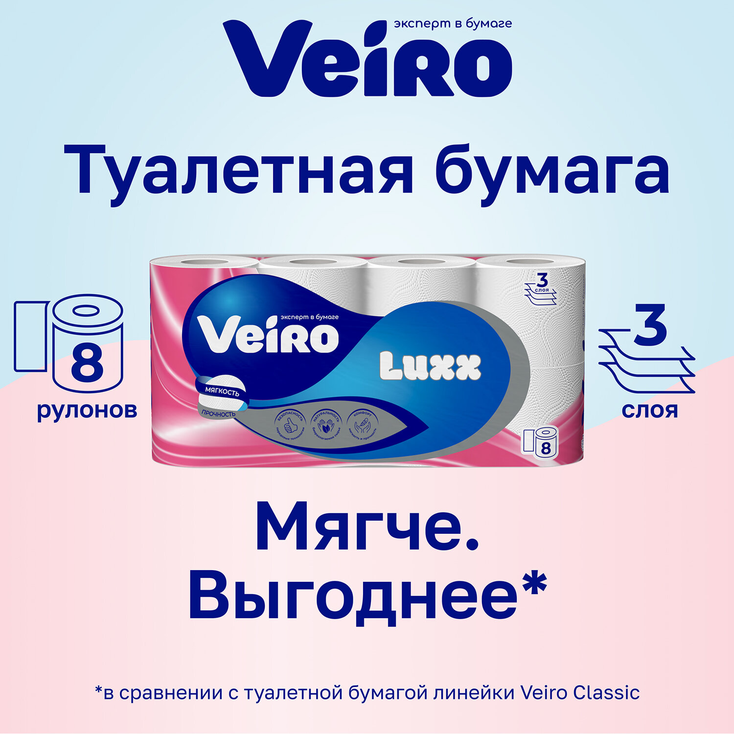 О товаре «Бумага туалетная Veiro Luxoria 3-слойная белая (8 рулонов в упаковке)»