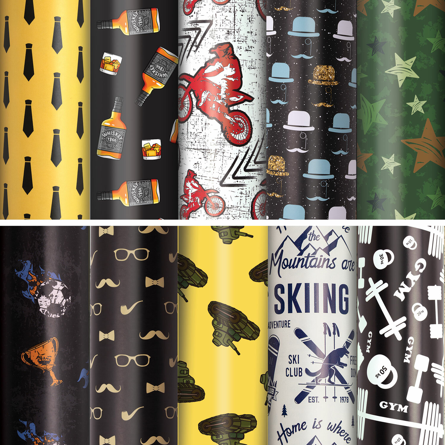 Бумага упаковочная подарочная мелованная "For Men", 70x100 см, 10 дизайнов ассорти, ЗОЛОТАЯ СКАЗКА, 591914