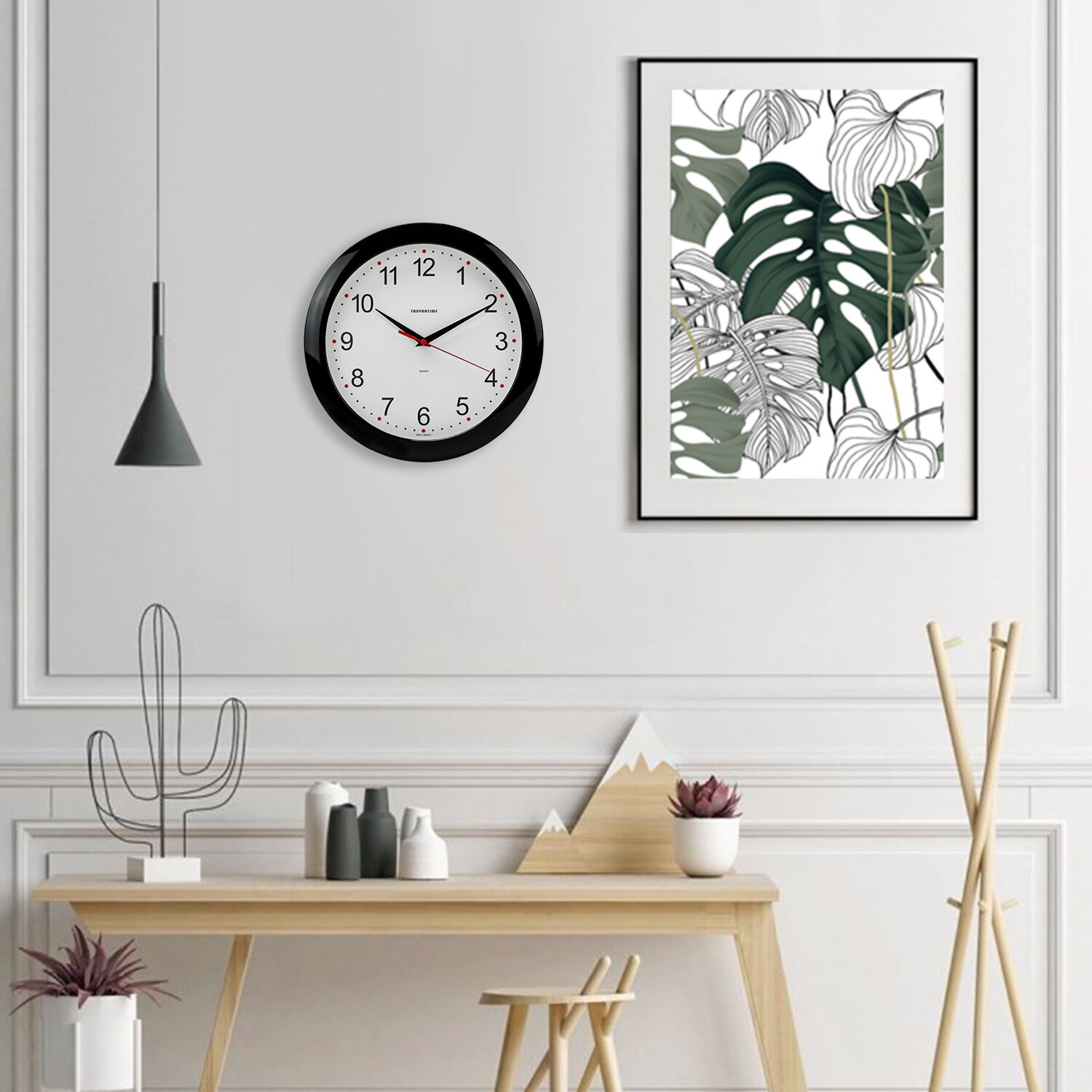 Часы настенные ход плавный, Troyka 122201203, круглые, 30*30*5, черная рамка