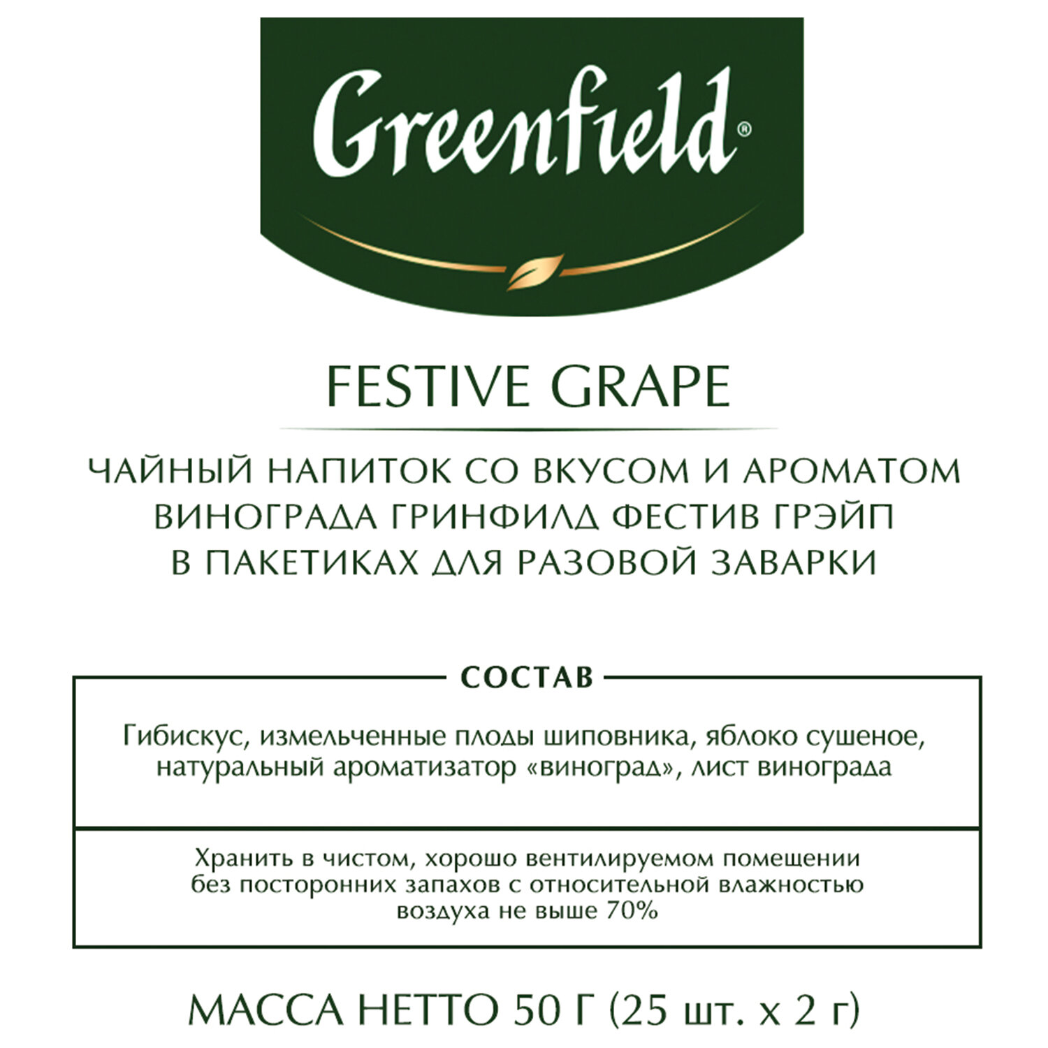О товаре «Чай Greenfield Festive Grape фруктовый фольгир.25пак/уп 0522-10, 98223_Т»