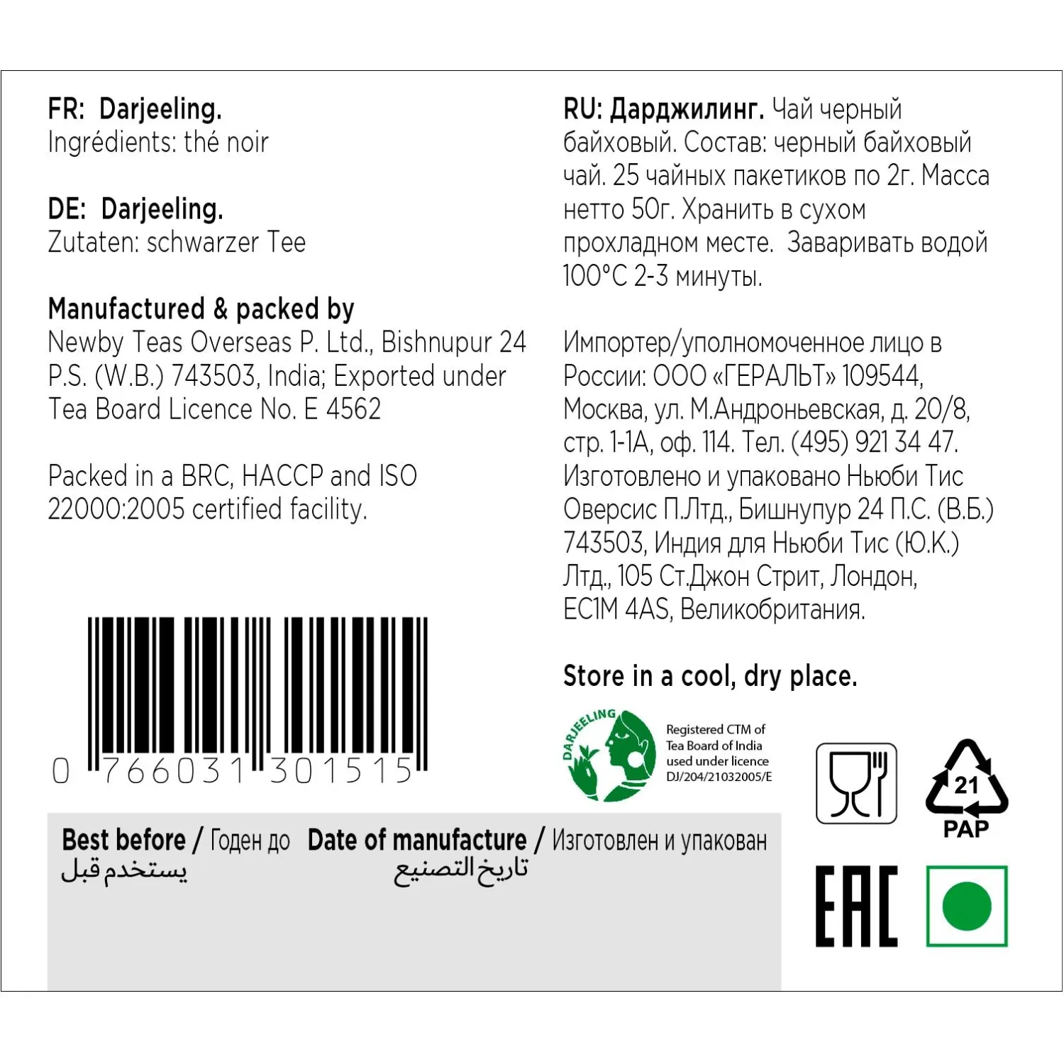 О товаре «Чай черный Newby Darjeeling 25 пакетиков»