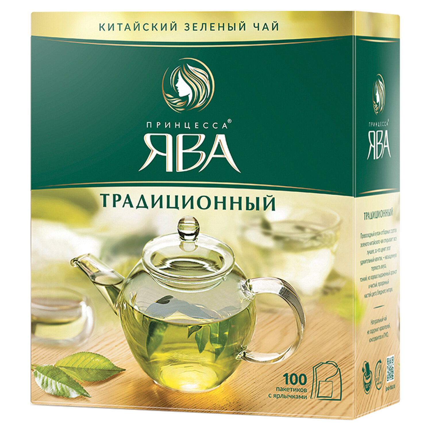 Чай зеленый Принцесса Ява 100 пакетиков. Чай «Принцесса Ява» — классический зеленый чай с его тонким ароматом и деликатным вкусом. Обладает тонизирующим воздействием на организм, подходит для утреннего или вечернего чаепития, а также как напиток после спортивной тренировки. Известен антиоксидантным воздействием на организм.