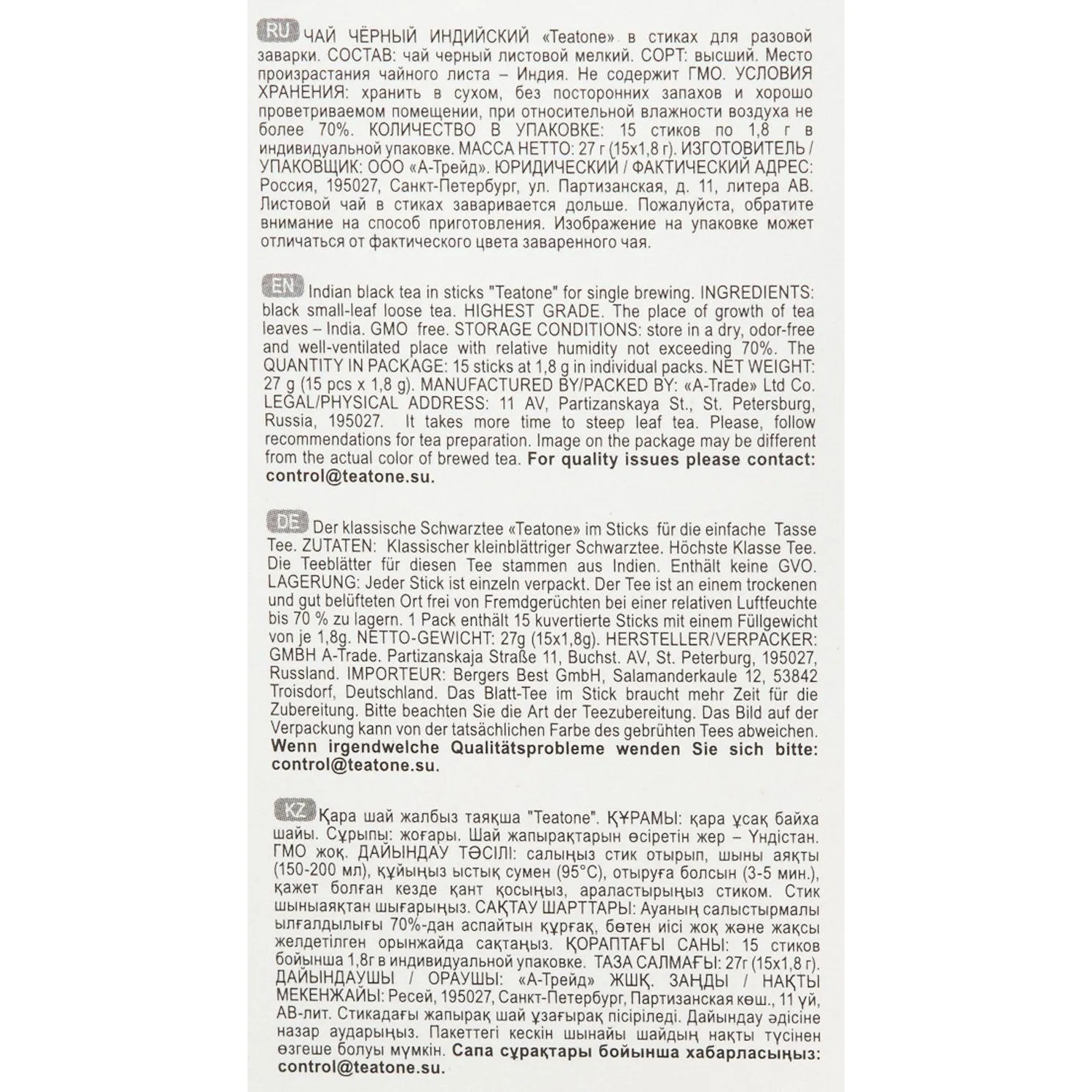 О товаре «Чай черный Teatone Black Tea 15 стиков»