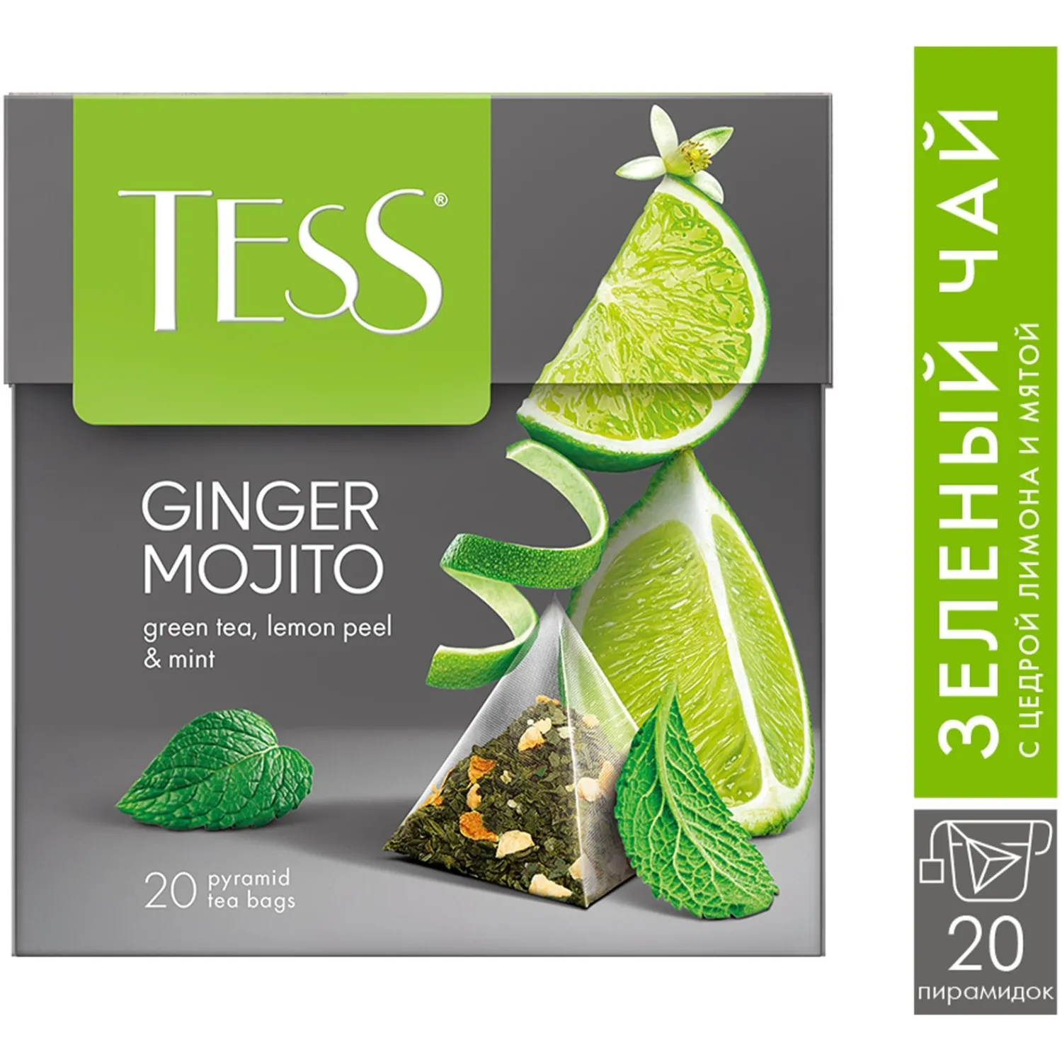 О товаре «Чай зеленый Tess Ginger Mojito 20 пакетиков (лимон, мята)»