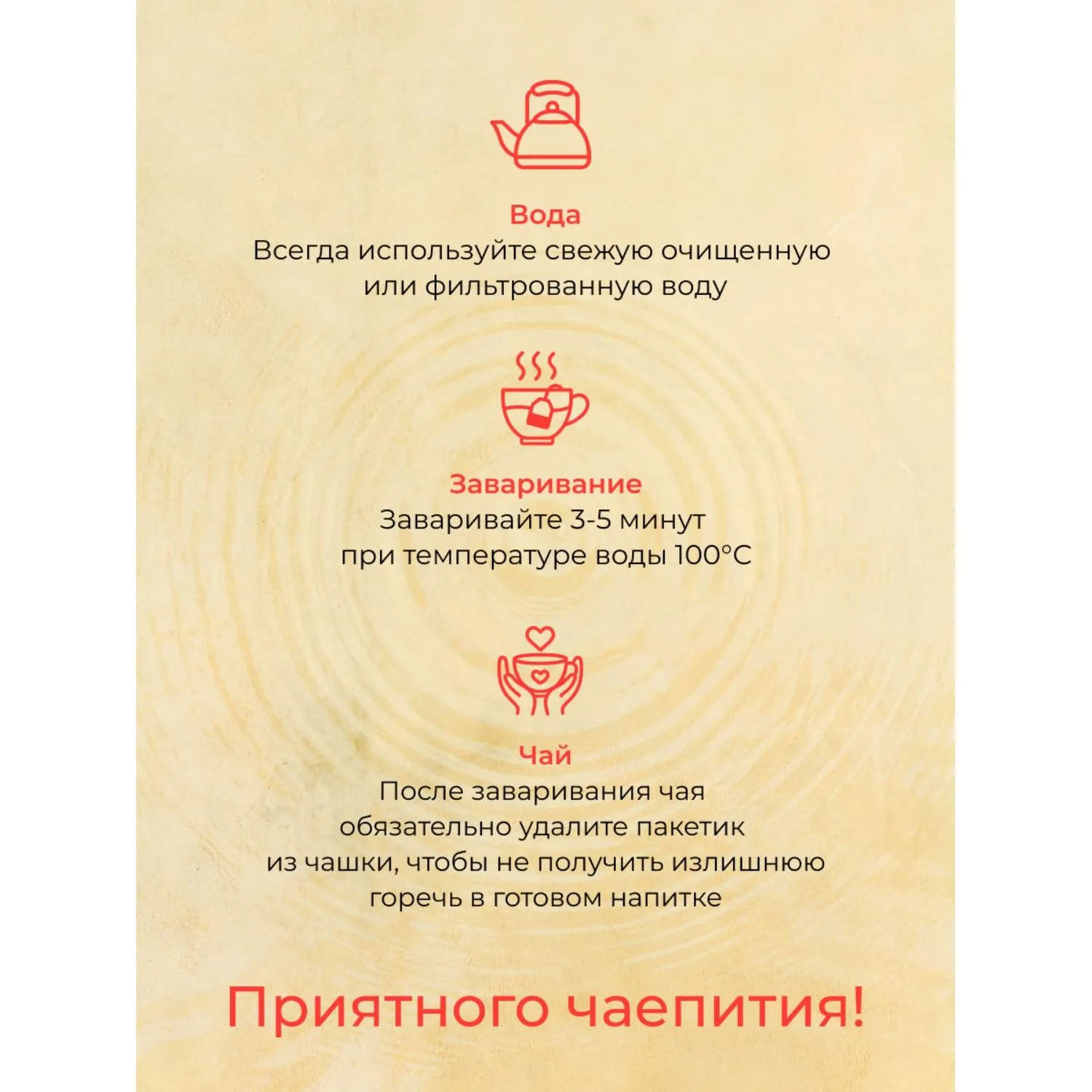 Способ приготовления: залейте чайный пакетик горячей воды, дайте чаю настояться 3-5 минут.