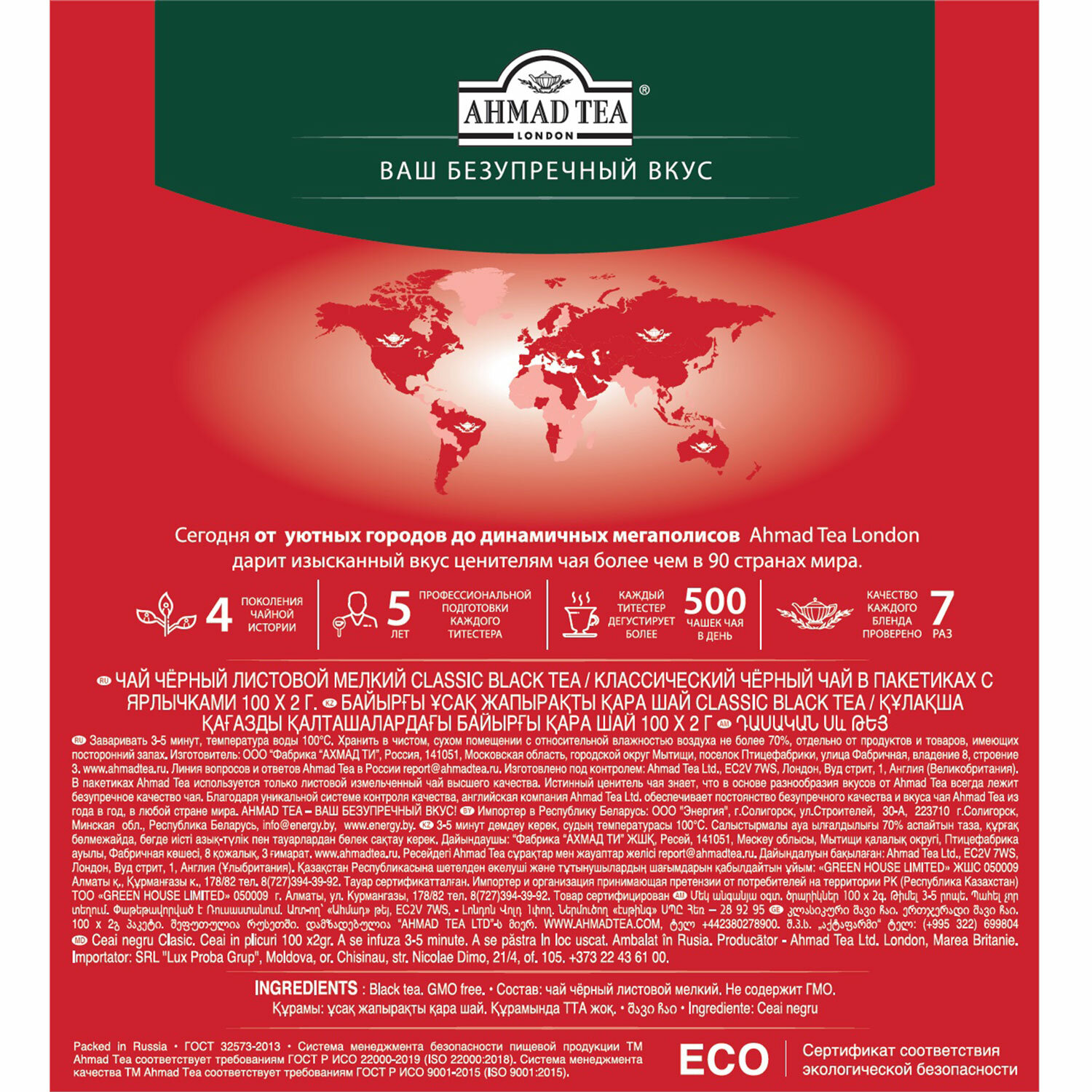 О товаре «Чай черный Ahmad Tea Classic Black Tea 100 пакетиков»