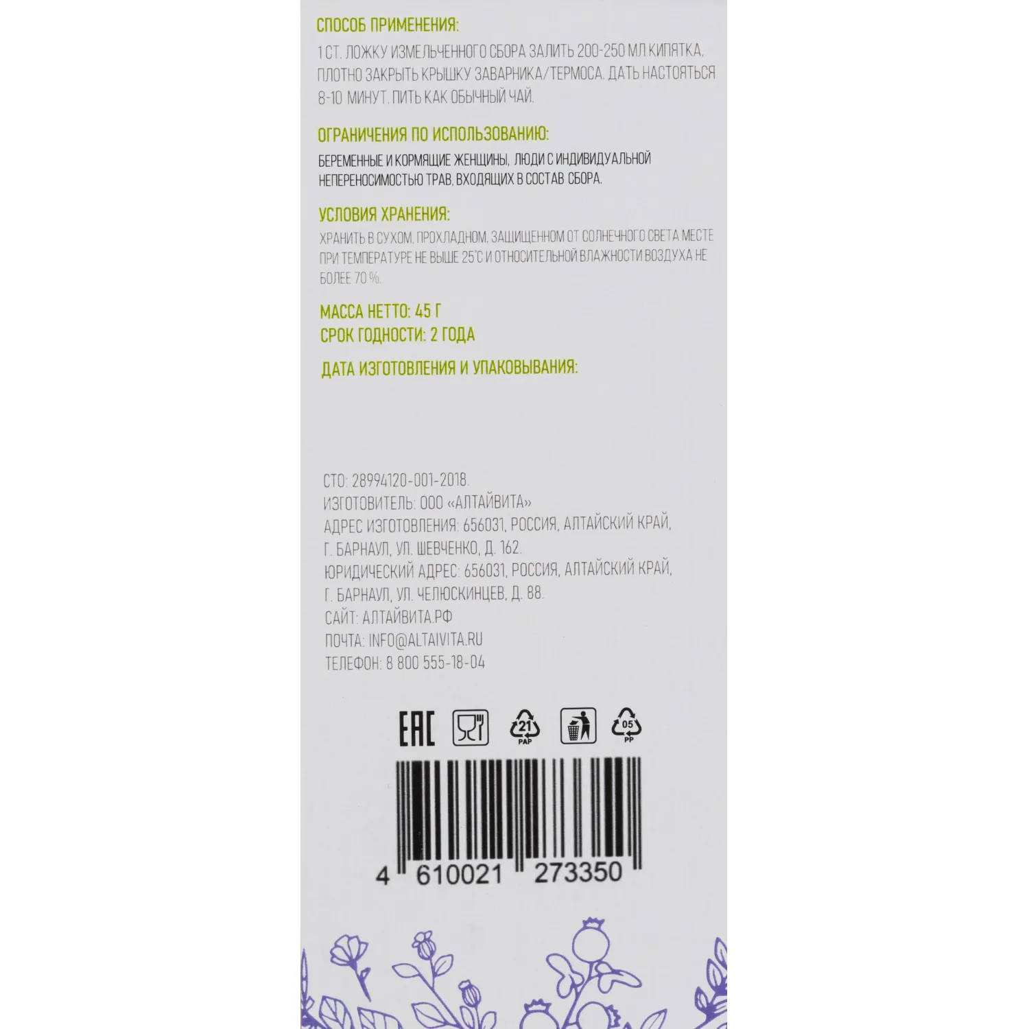 О товаре «Чай листовой травяной Altavita Сила Алтая 45 г»