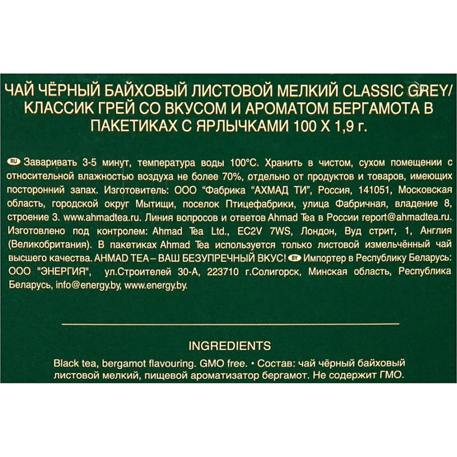 О товаре «Чай черный Ahmad Tea Classic Grey 100 пакетиков (бергамот)»