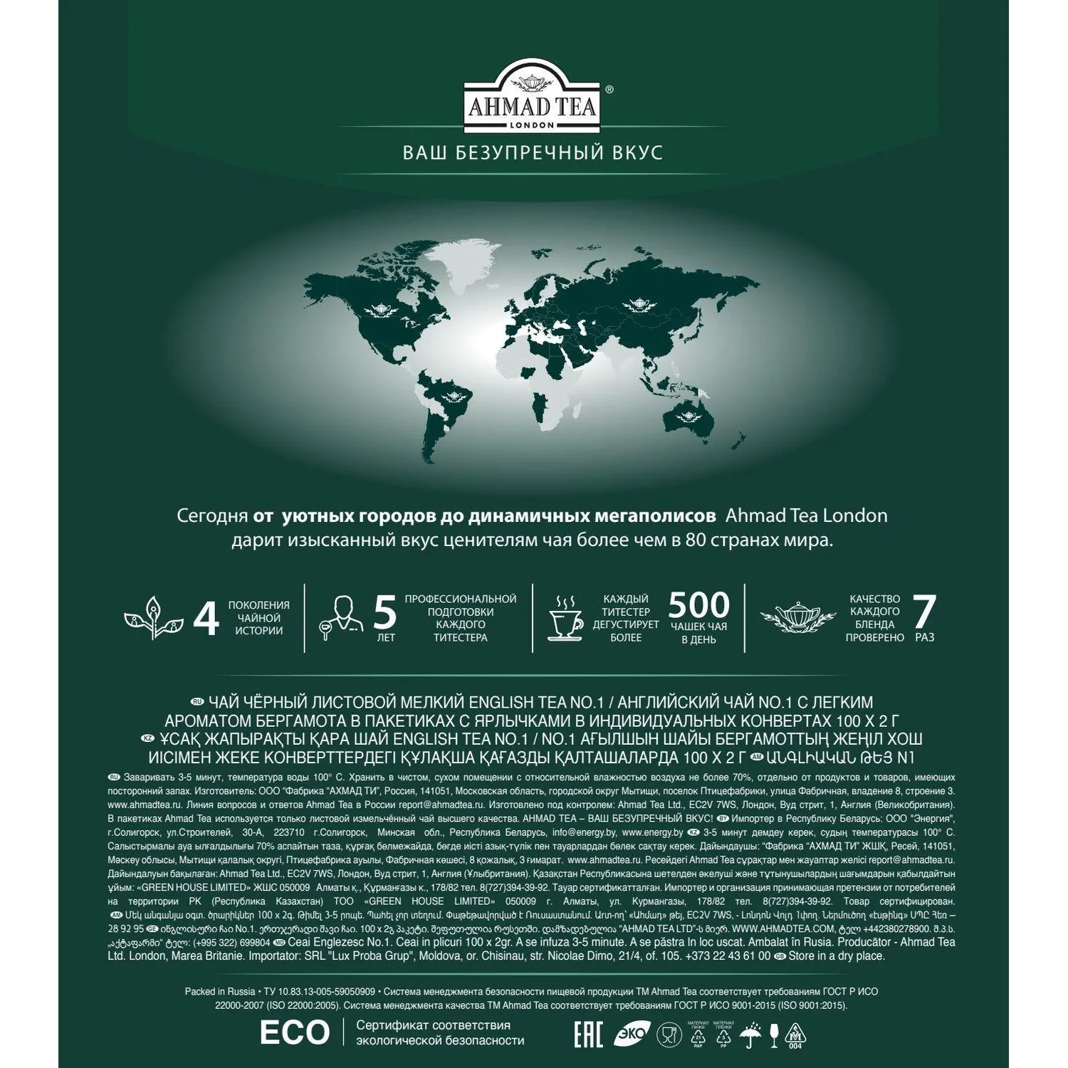 Чай черный Ahmad Tea English № 1 100 пакетиков (бергамот). Черный чай Ahmad English № 1 — смесь эксклюзивных сортов чая с легким ароматом бергамота. Чашка этого чая делает общение добрым и приятным. Прекрасный напиток для любого времени дня. Идеальное сочетание мягкого вкуса, аромата, цвета и крепости.