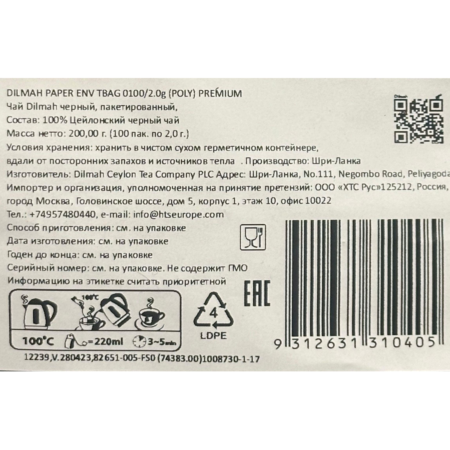 Чай чёрный Dilmah Premium Ceylon Tea 100 пакетиков