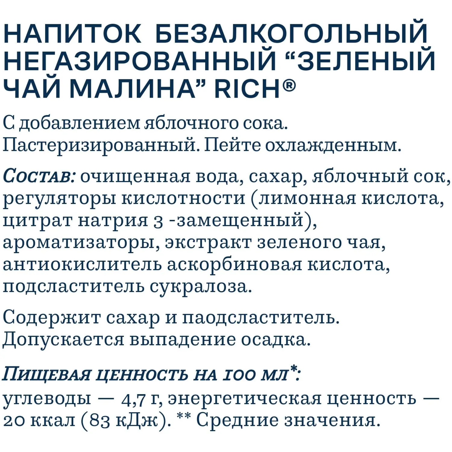 О товаре «Чай холодный зеленый Rich Малина ПЭТ 0,5л»