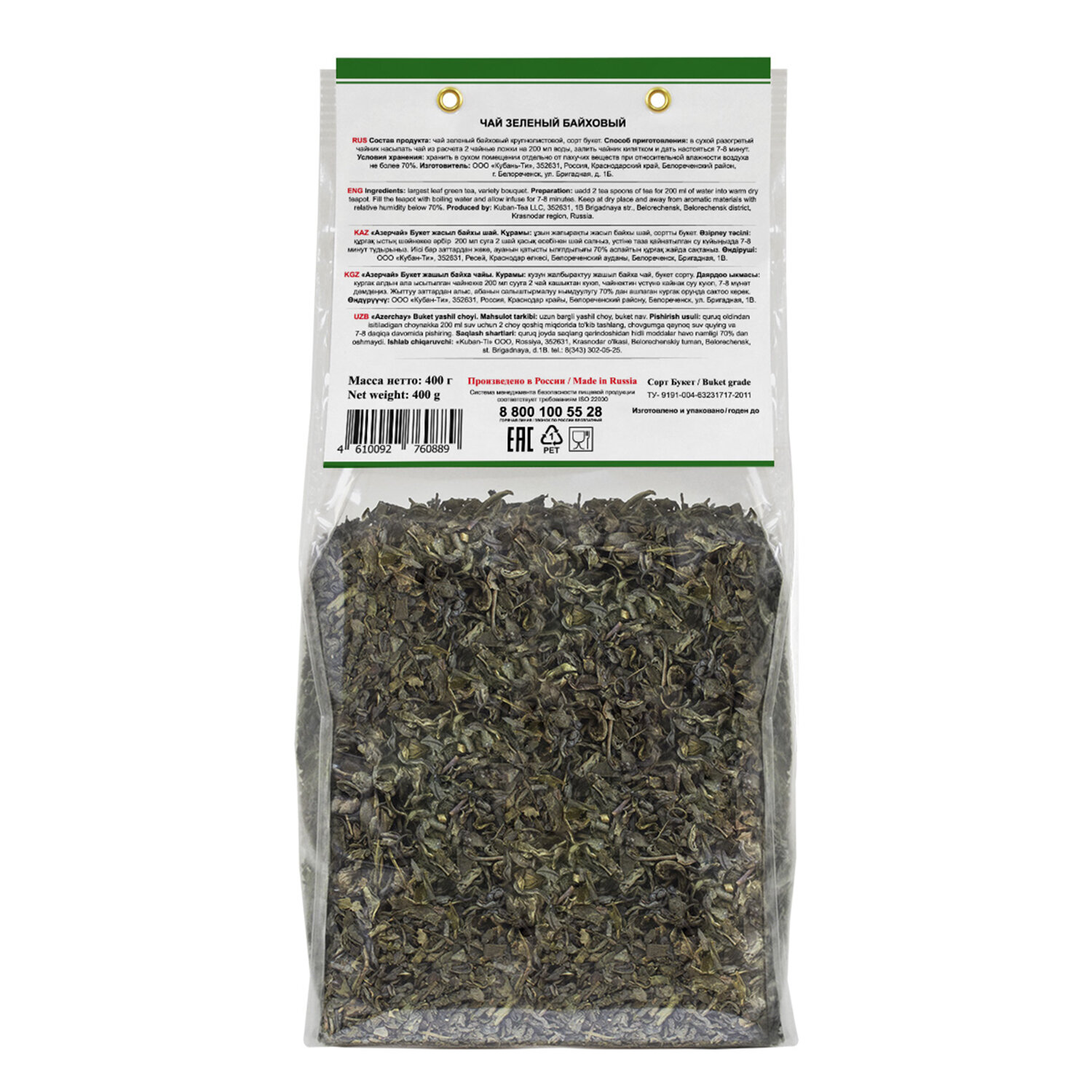 О товаре «Чай листовой АЗЕРЧАЙ "Букет" зеленый крупнолистовой 400 г, 418039»