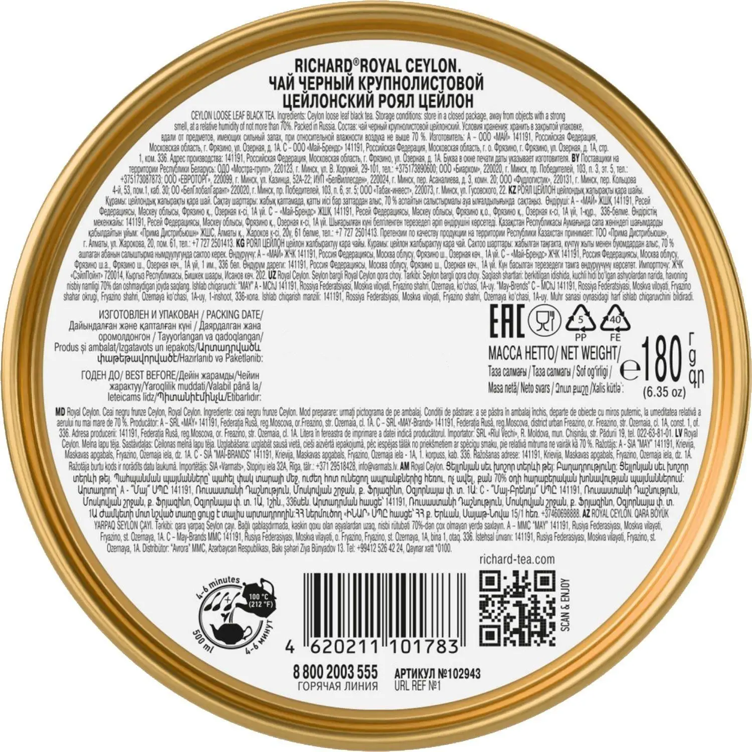 О товаре «Чай Richard Royal Ceylon крупнолистовой черный, 180г НГ»