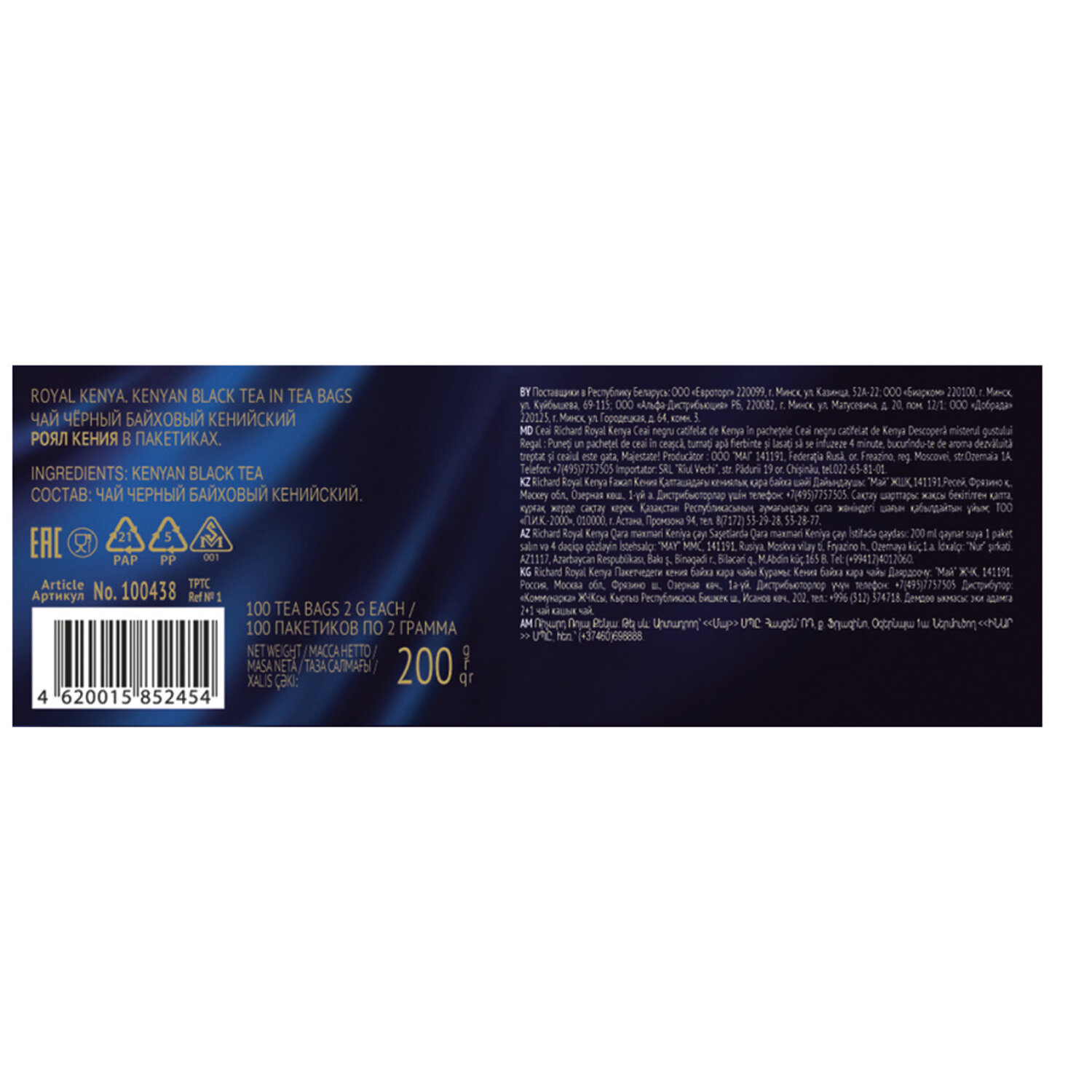 О товаре «Чай черный Richard Royal Kenya 100 пакетиков»