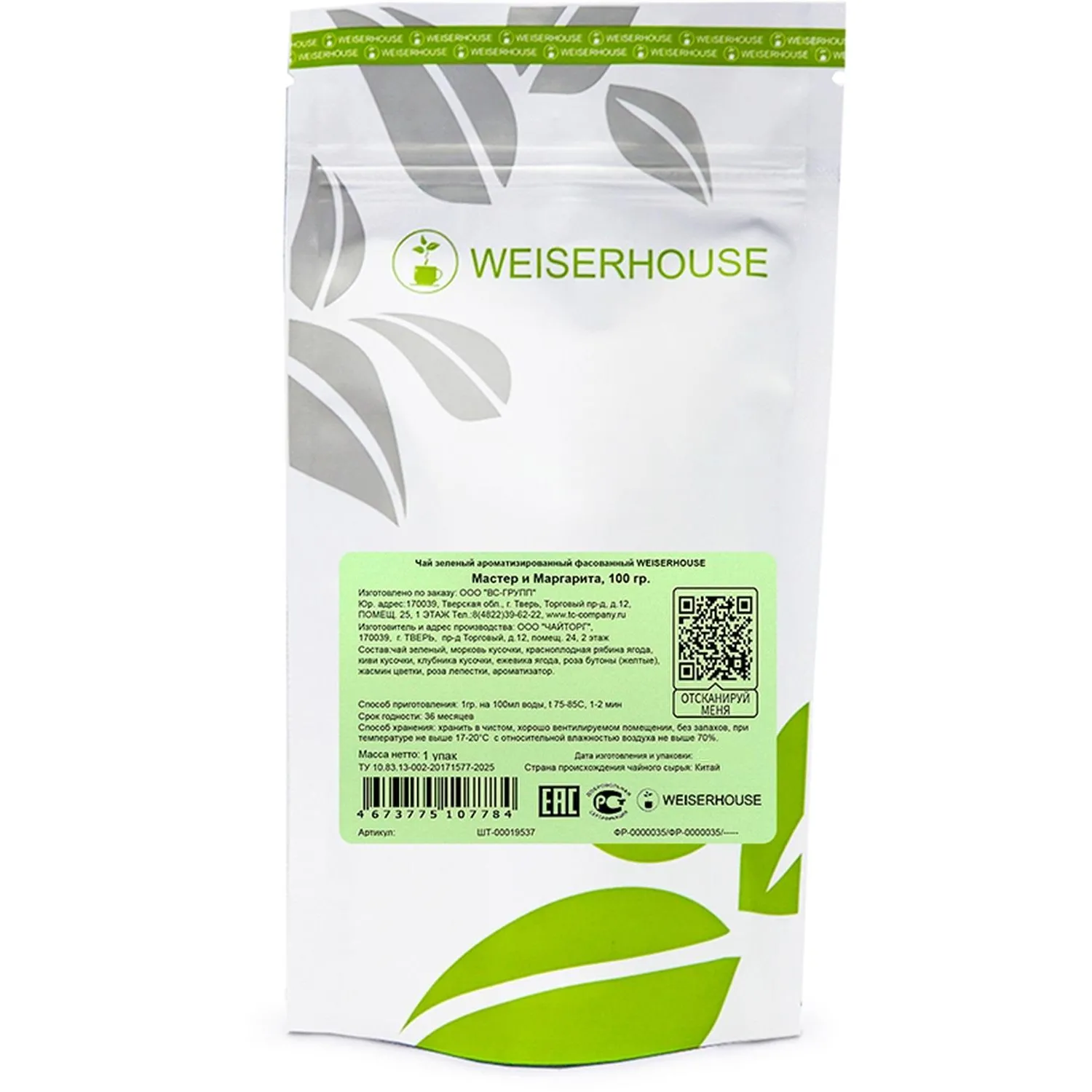 О товаре «Чай зеленый Weiserhouse Мастер и Маргарита, 100г»