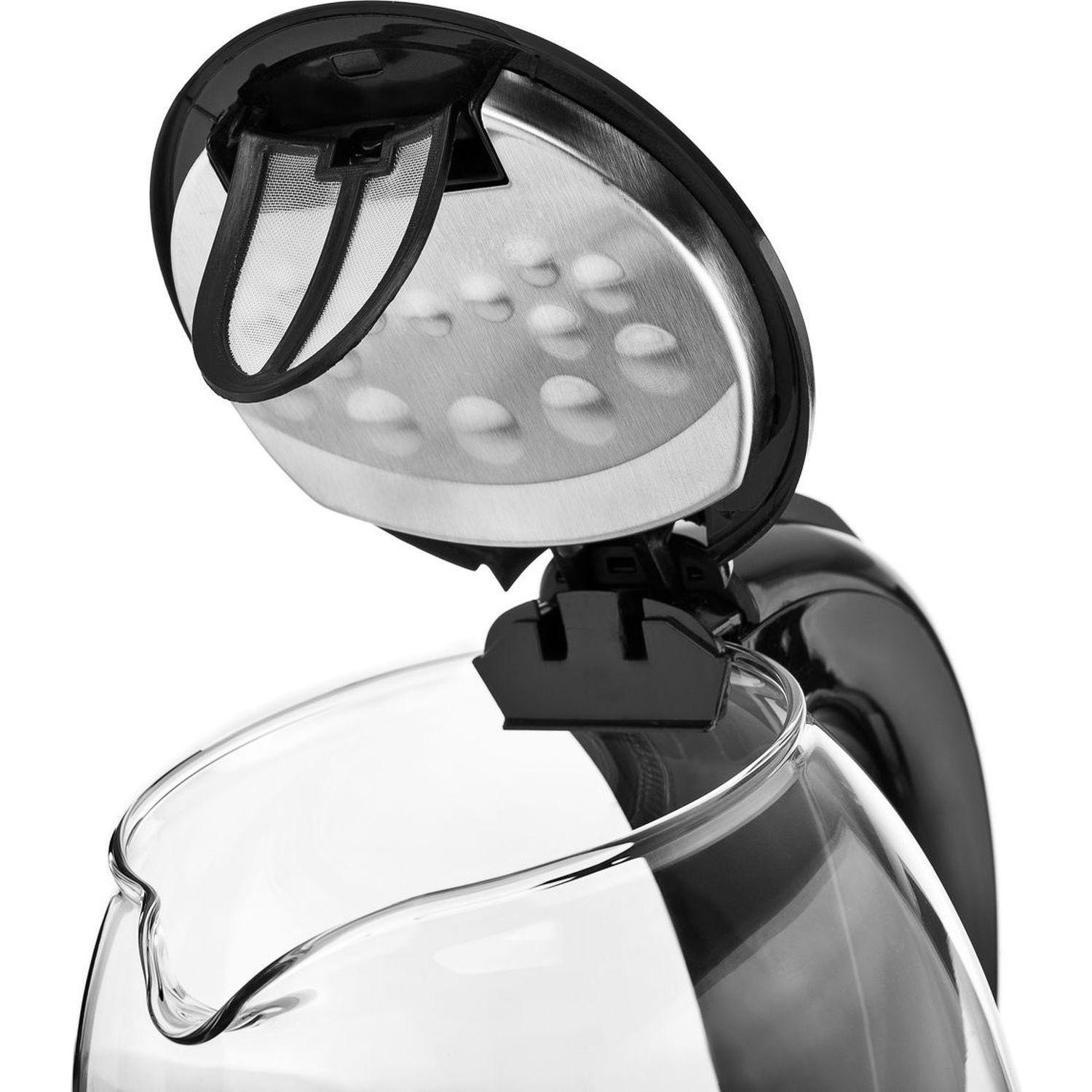 Корпус выполнен из высокопрочного термостойкого стекла, что придаёт ему элегантный вид и позволяет наблюдать за процессом кипячения. Объём чайника составляет 1,7 литра, а мощность 2200 Вт обеспечивает быстрое закипание воды, экономя ваше время.