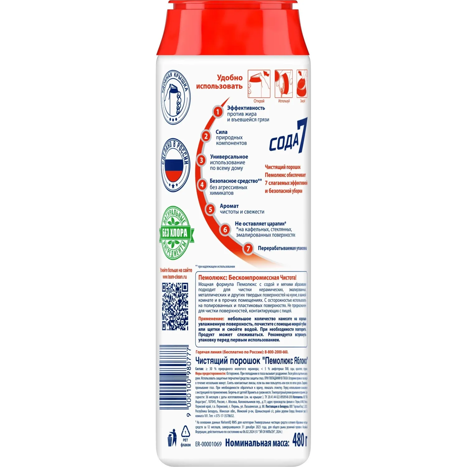О товаре «Универсальное чистящее средство Пемолюкс Сода 7 Яблоко порошок 480 г»