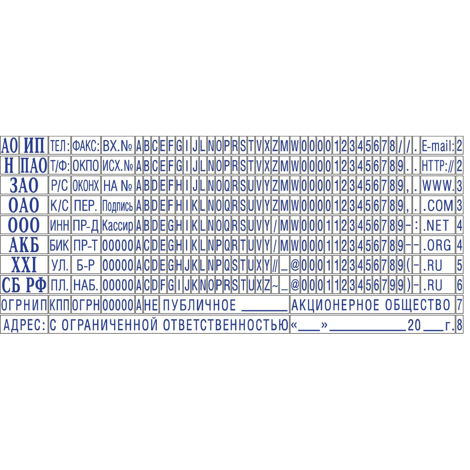 В комплекте: датер с рифленой пластиной, пинцет, две кассы букв TSA (арт. 73899) и TSB (арт. 73990), двухцветная сменная подушка E/2600/2, Е/2600 синяя (арт. 114149).